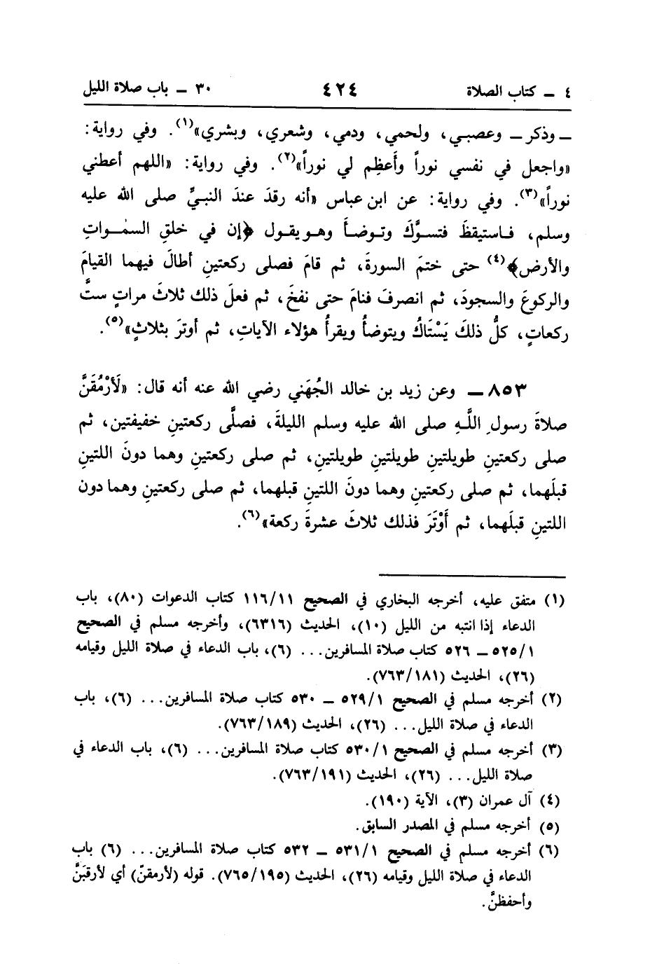 (¬6) أخرجه مسلم في الصحيح 1/ 531 - 532 كتاب صلاة المسافرين. . . (6) باب الدعاء في صلاة الليل وقيامه (26)، الحديث (195/ 765). قوله (لأرمقنّ) أي لأرقبَنَّ وأحفظنَّ.