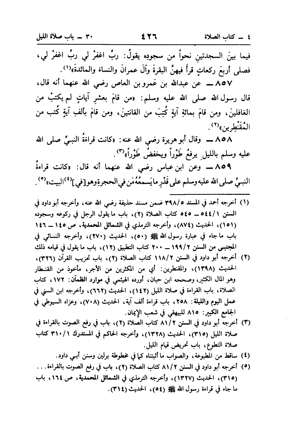 (¬3) أخرجه أبو داود في السنن 2/ 81 كتاب الصلاة (2)، باب في رفع الصوت بالقراءة في صلاة الليل (315)، الحديث (1328)، وأخرجه الحاكم في المستدرك 1/ 310 كتاب صلاة التطوع، باب تحريض قيام الليل.