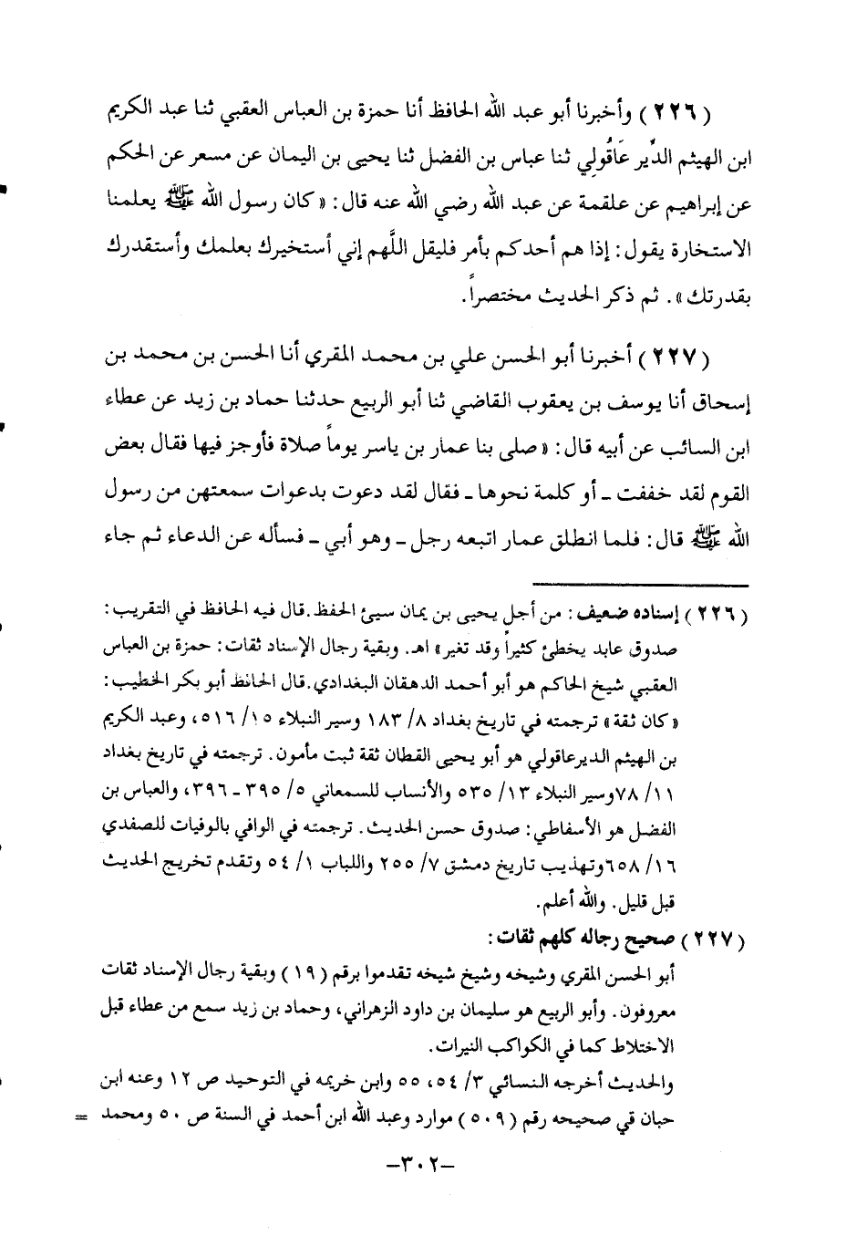 226 - وَأَخْبَرَنَا أَبُو عَبْدِ اللَّهِ الْحَافِظُ , أنا حَمْزَةُ بْنُ الْعَبَّاسِ الْعَقَبِيُّ , ثنا عَبْدُ الْكَرِيمِ بْنُ الْهَيْثَمِ الدَّيْرَعَاقُولِي , ثنا عَبَّاسُ بْنُ الْفَضْلِ , ثنا يَحْيَى بْنُ الْيَمَانِ , عَنْ مِسْعَرٍ , عَنِ الْحَكَمِ عَنْ إِبْرَاهِيمَ , عَنْ عَلْقَمَةَ , عَنْ عَبْدِ اللَّهِ , رَضِيَ اللَّهُ عَنْهُ قَالَ: كَانَ رَسُولُ اللَّهِ صَلَّى اللهُ عَلَيْهِ وَسَلَّمَ §يُعَلِّمُنَا الِاسْتِخَارَةَ يَقُولُ: «إِذَا هَمَّ أَحَدُكُمْ بِأَمْرٍ فَلْيَقُلِ اللَّهُمَّ إِنِّي أَسْتَخِيرُكَ بِعِلْمِكَ وَأَسْتَقْدِرُكَ بِقُدْرَتِكَ» ثُمَّ ذَكَرَ الْحَدِيثَ مُخْتَصَرًا