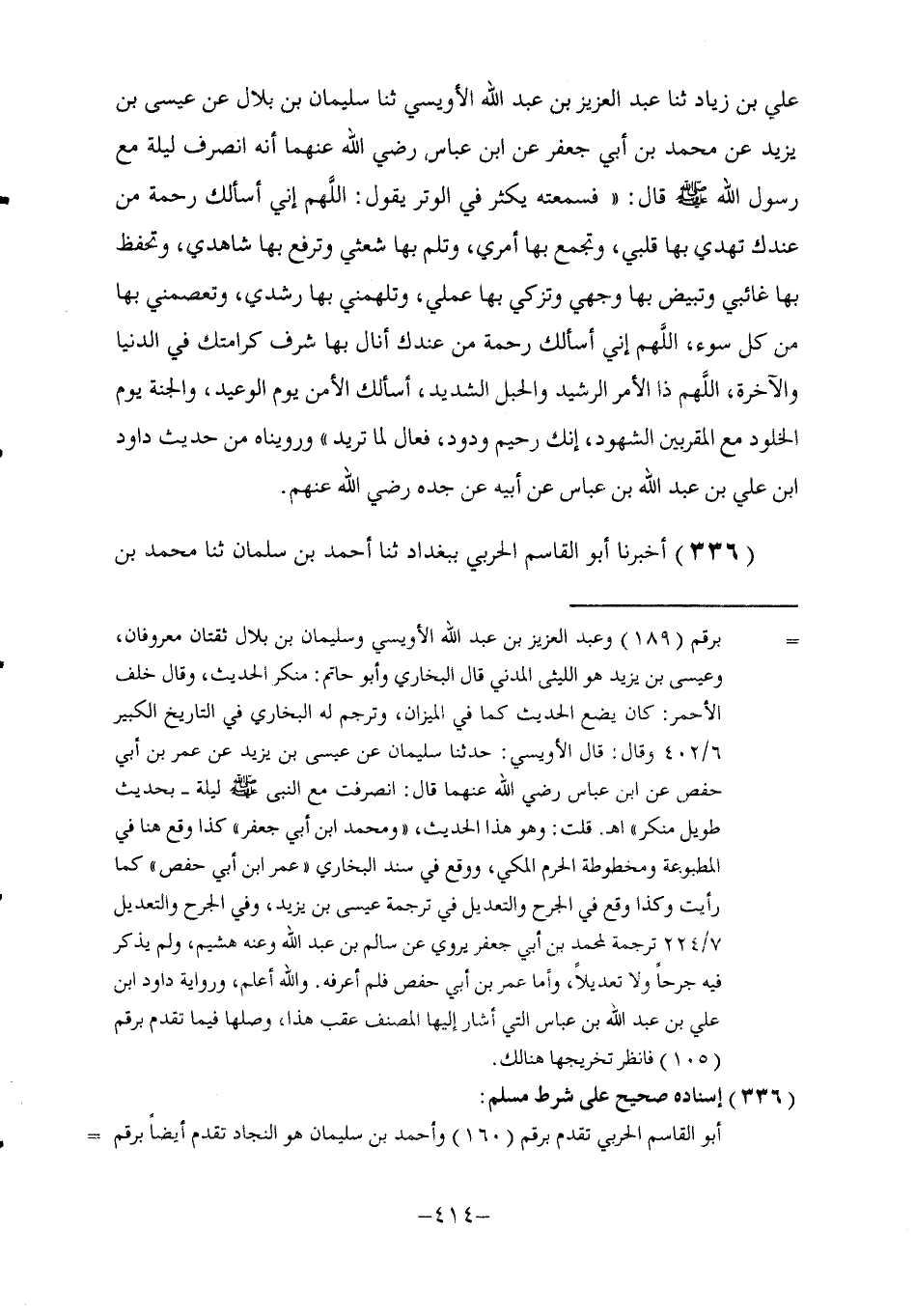 336 - أَخْبَرَنَا أَبُو الْقَاسِمِ الْحَرْبِيُّ بِبَغْدَادَ ثنا أَحْمَدُ بْنُ سَلْمَانَ , ثنا مُحَمَّدُ بْنُ -[415]- عَبْدِ اللَّهِ بْنِ سُلَيْمَانَ , ثنا عَبَّاسٌ النَّرْسِيُّ , ثنا جَعْفَرُ بْنُ سُلَيْمَانَ , عَنِ الْجُرَيْرِيِّ , عَنْ أَبِي نَضْرَةَ , قَالَ: يَنْتَهِي الْقُرْآنُ كُلُّهُ إِلَى: {§إِنَّ رَبَّكَ فَعَّالٌ لِمَا يُرِيدُ} [هود: 107] " وَرَوَاهُ مُعْتَمِرُ بْنُ سُلَيْمَانَ قَالَ: قَالَ أَبِي حَدَّثَنَا أَبُو نَضْرَةَ عَنْ جَابِرٍ أَوْ أَبِي سَعِيدٍ , أَوْ بَعْضِ أَصْحَابِ النَّبِيِّ صَلَّى اللهُ عَلَيْهِ وَسَلَّمَ قَالَ فِي هَذِهِ الْآيَةِ: إِنَّهَا قَاضِيَةٌ عَلَى الْقُرْآنِ كُلِّهِ: {إِلَّا مَا شَاءَ رَبُّكَ إِنَّ رَبَّكَ فَعَّالٌ لِمَا يُرِيدُ} [هود: 107] قَالَ الْمُعْتَمِرُ: قَالَ أَبِي: عَنَى عَلَى كُلِّ وَعِيدٍ فِي الْقُرْآنِ