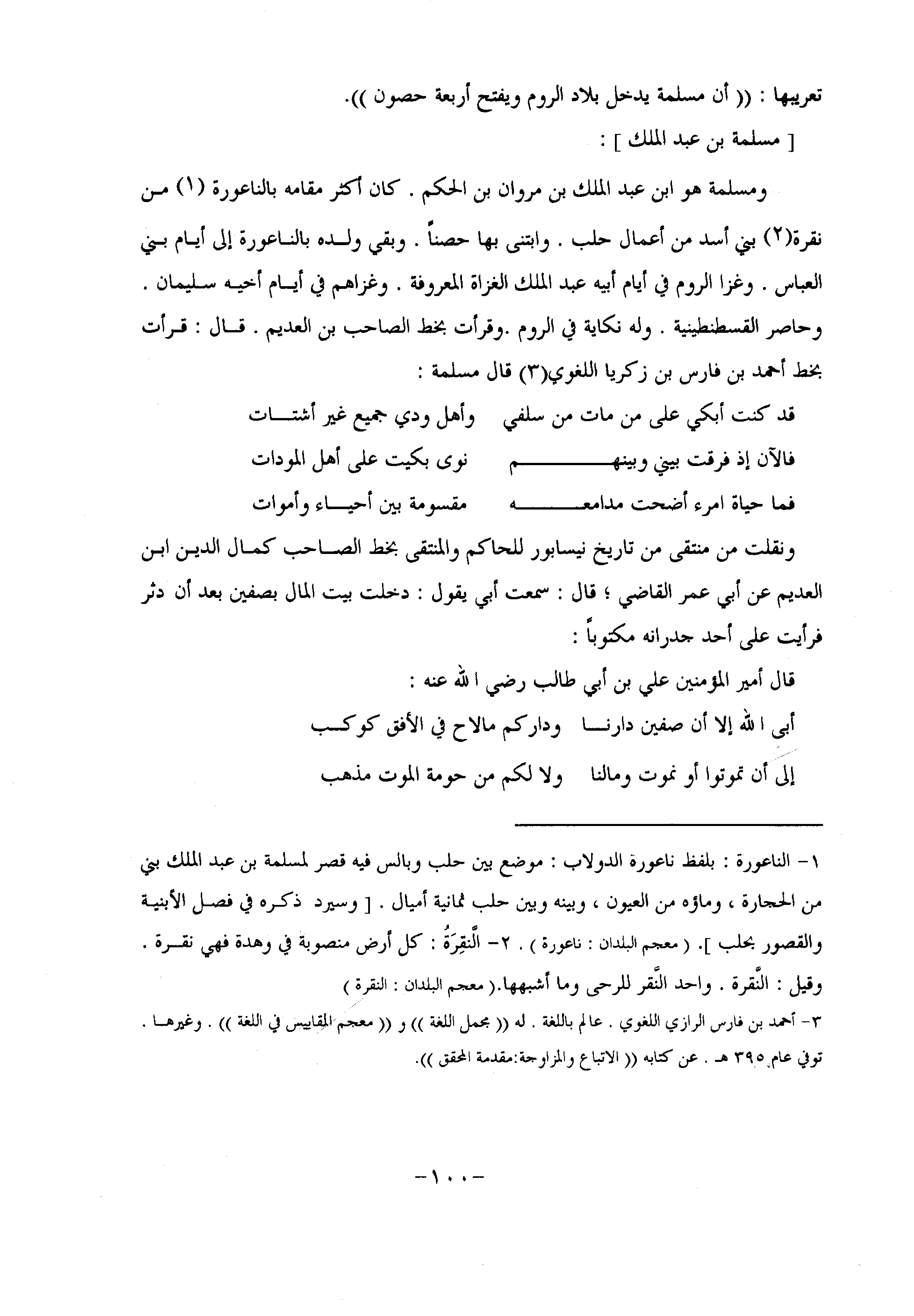 وحاصر القسطنطينية. وله نكاية في الروم. وقرأت بخط الصاحب بن العديم. قال: قرأت بخط أحمد بن فارس بن زكريا اللغوي «3» قال مسلمة: