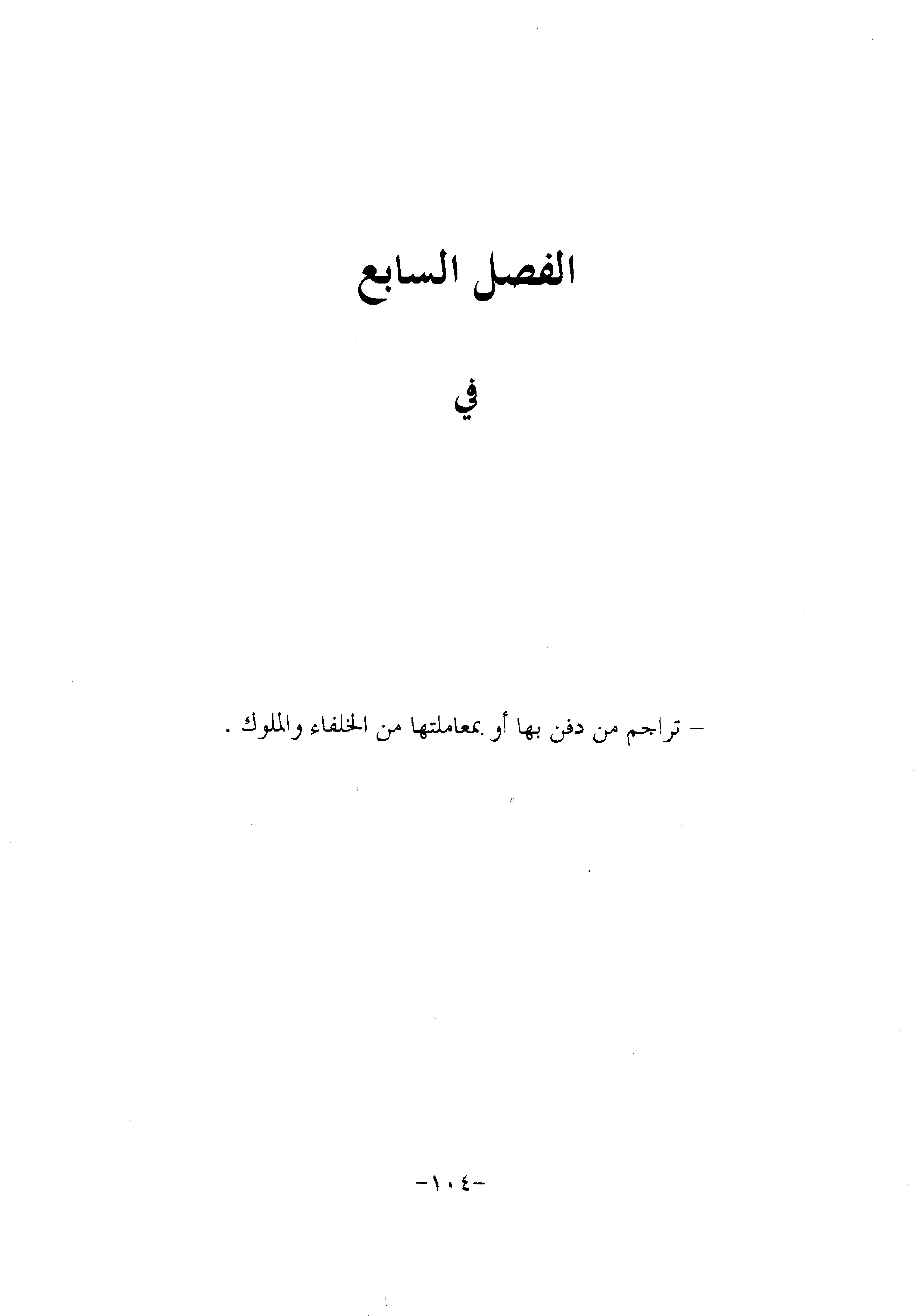 الفصل السابع في- تراجم من دفن بها أو بمعاملتها من الخلفاء والملوك.