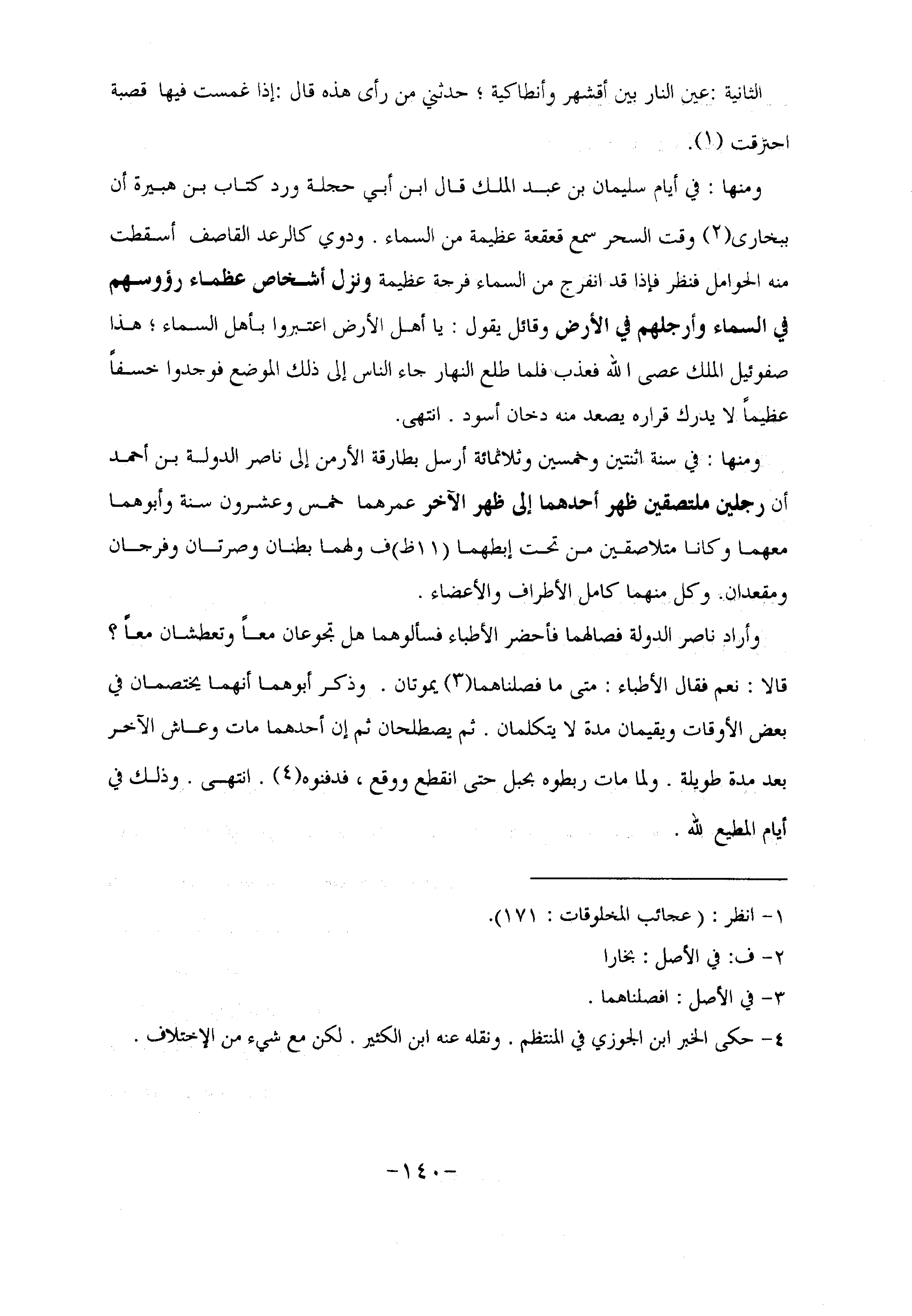 ومنها: في سنة اثنتين وخمسين وثلاثمائة أرسل بطارقة الأرمن إلى ناصر الدولة بن أحمد أن رجلين ملتصقين ظهر أحدهما إلى ظهر الآخر عمرهما خمس وعشرون سنة وأبوهما معهما وكانا متلاصقين من تحت إبطهما (11 ظ) ف ولهما بطنان وصرتان وفرجان ومقعدان. وكل منهما كامل الأطراف والأعضاء.