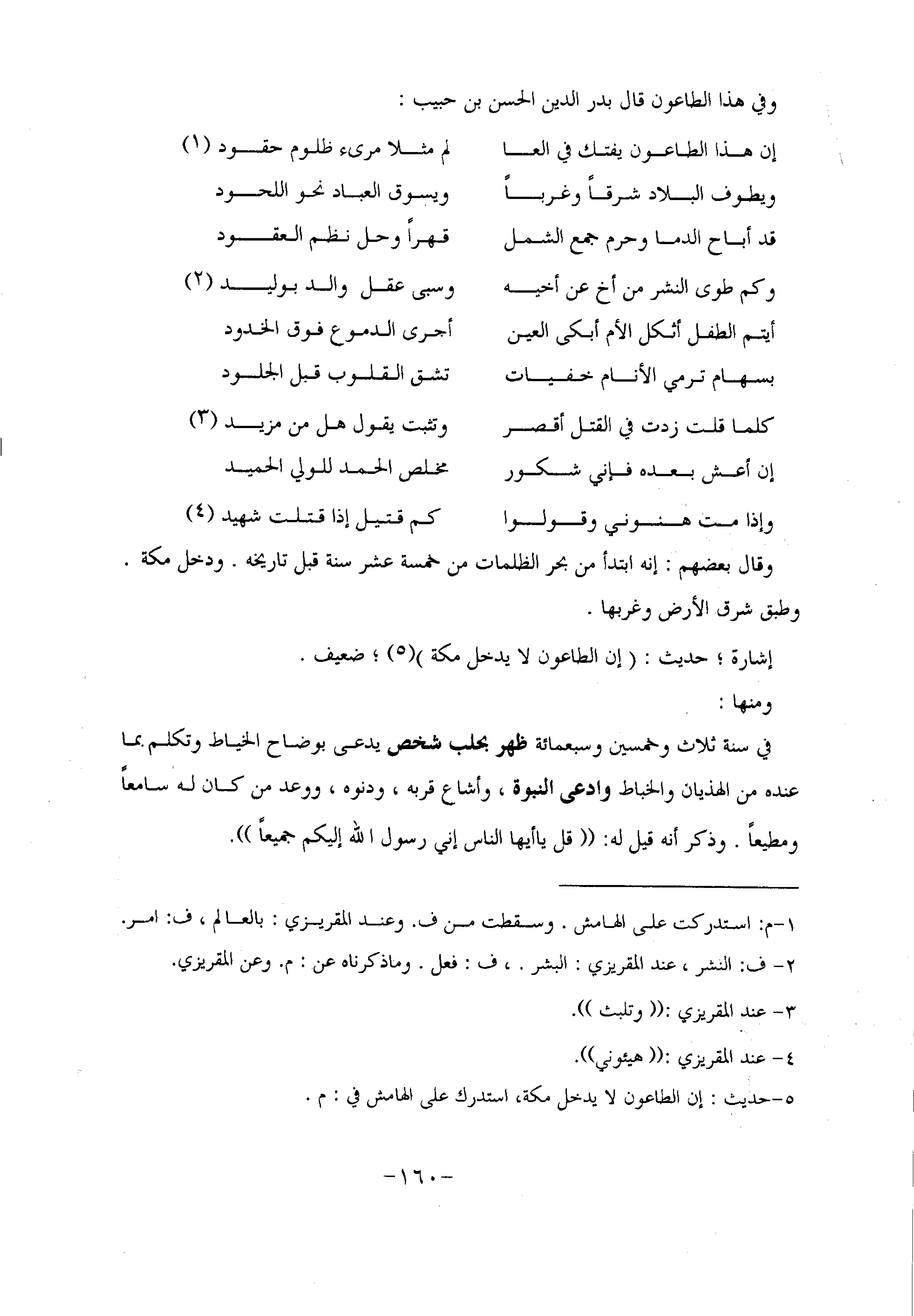 وفي هذا الطاعون قال بدر الدين الحسن بن حبيب: