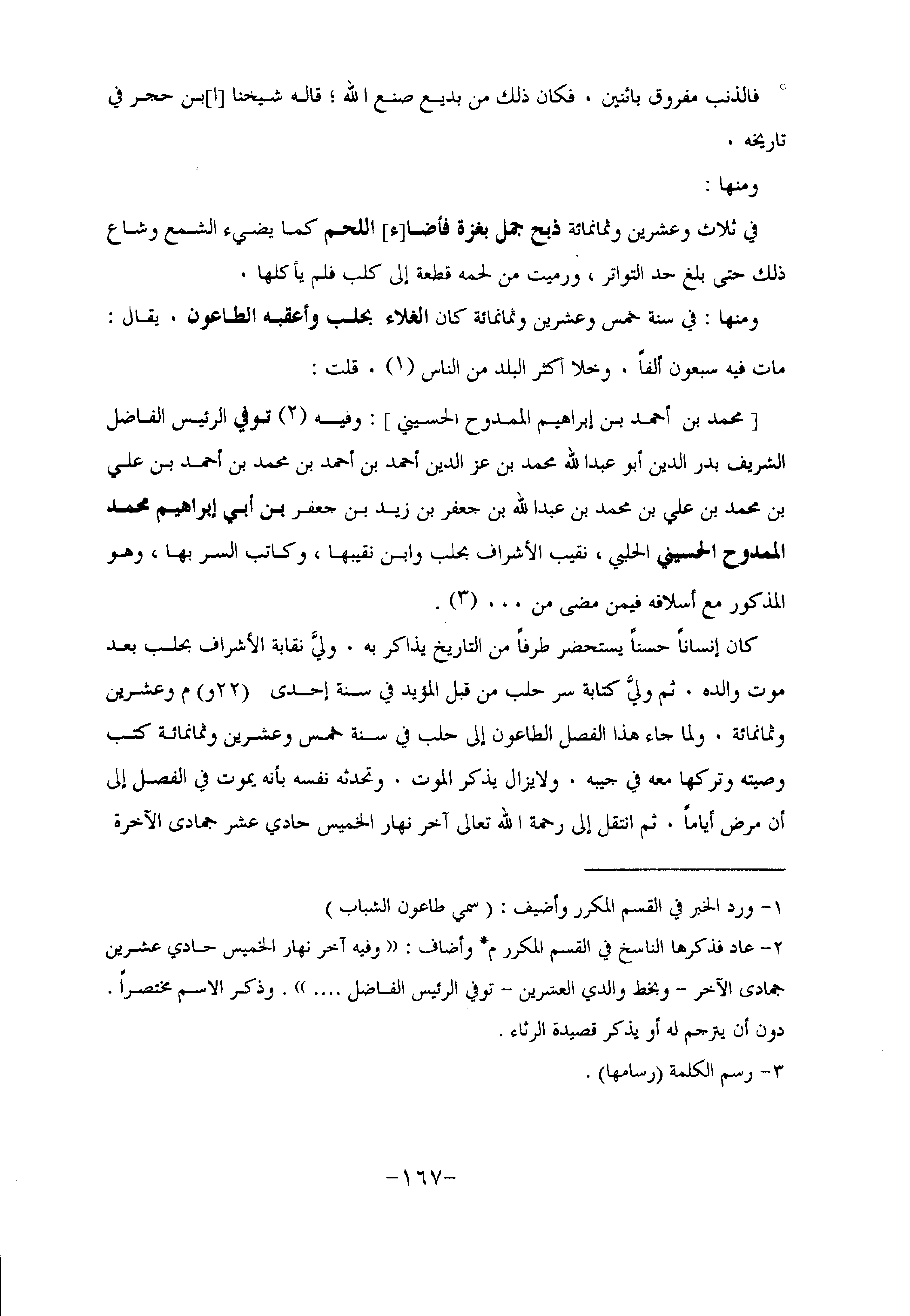 ومنها: في سنة خمس وعشرين وثمانمائة كان الغلاء بحلب وأعقبه الطاعون. يقال: