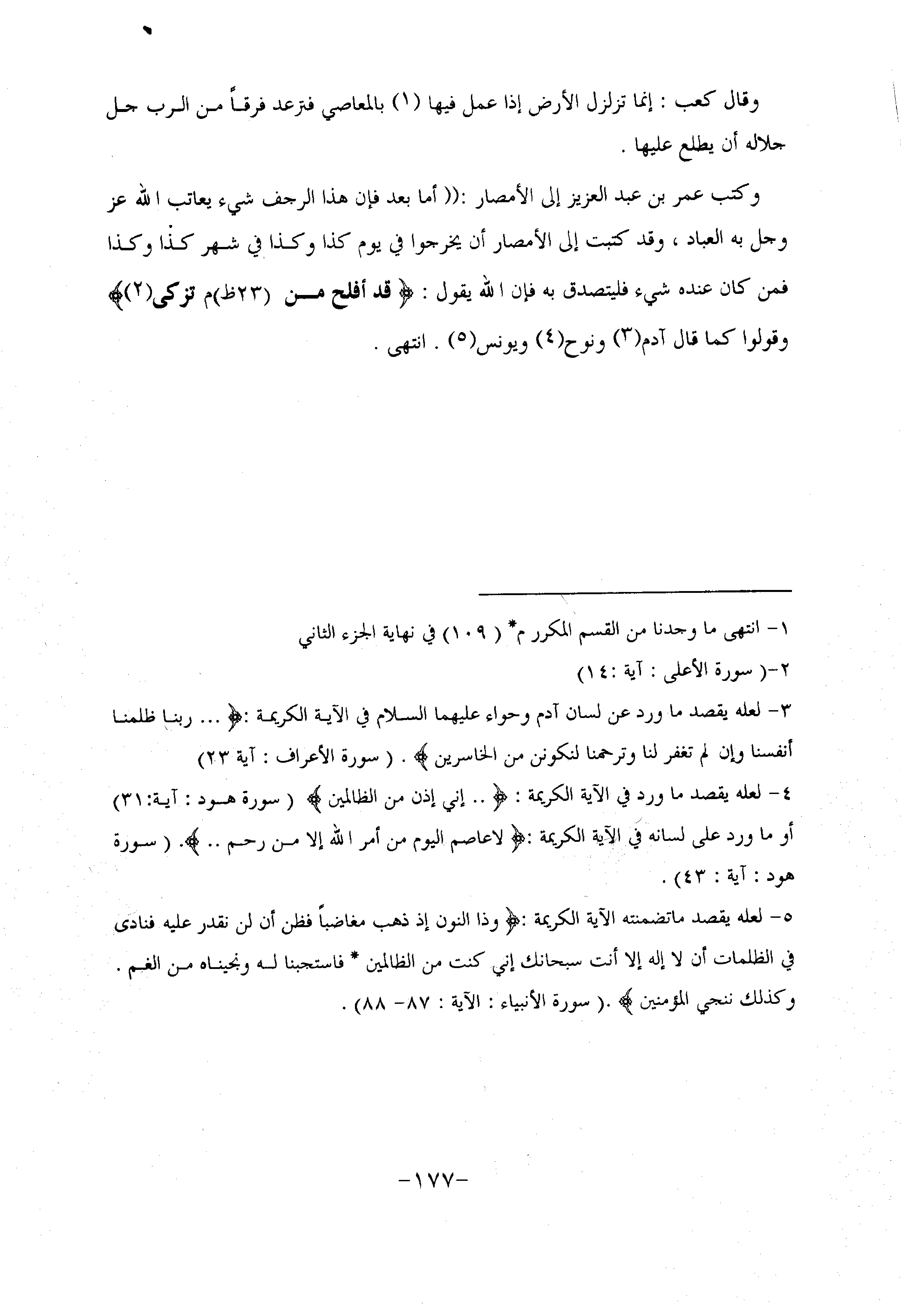 وكتب عمر بن عبد العزيز إلى الأمصار: «أما بعد فإن هذا الرجف شيء يعاتب الله عز وجل به العباد، وقد كتبت إلى الأمصار أن يخرجوا في يوم كذا وكذا في شهر كذا وكذا فمن كان عنده شيء فليتصدق به فإن الله يقول: قَدْ أَفْلَحَ مَنْ