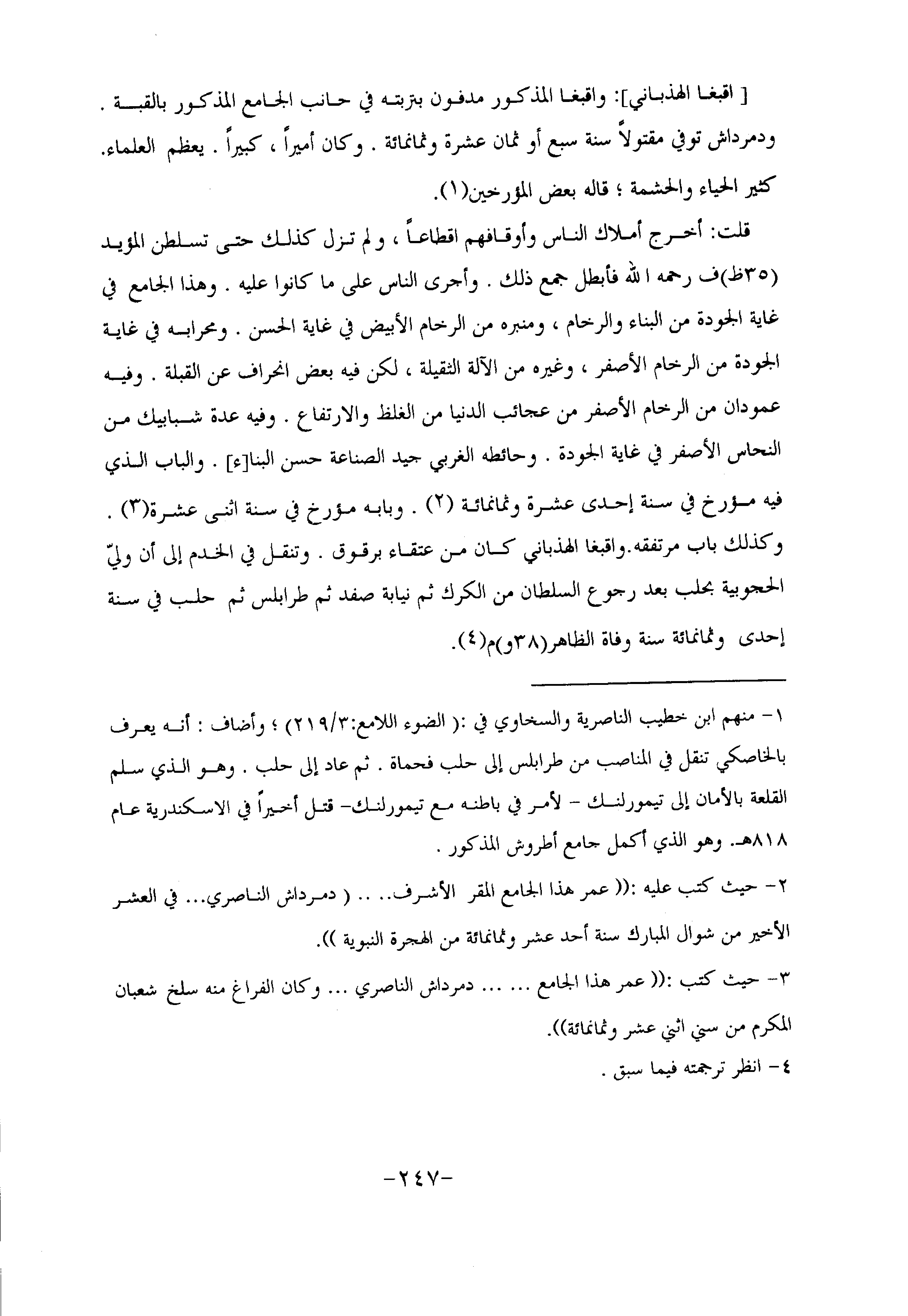 ودمرداش توفي مقتولا سنة سبع أو ثمان عشرة وثمانمائة. وكان أميرا، كبيرا. يعظم العلماء.