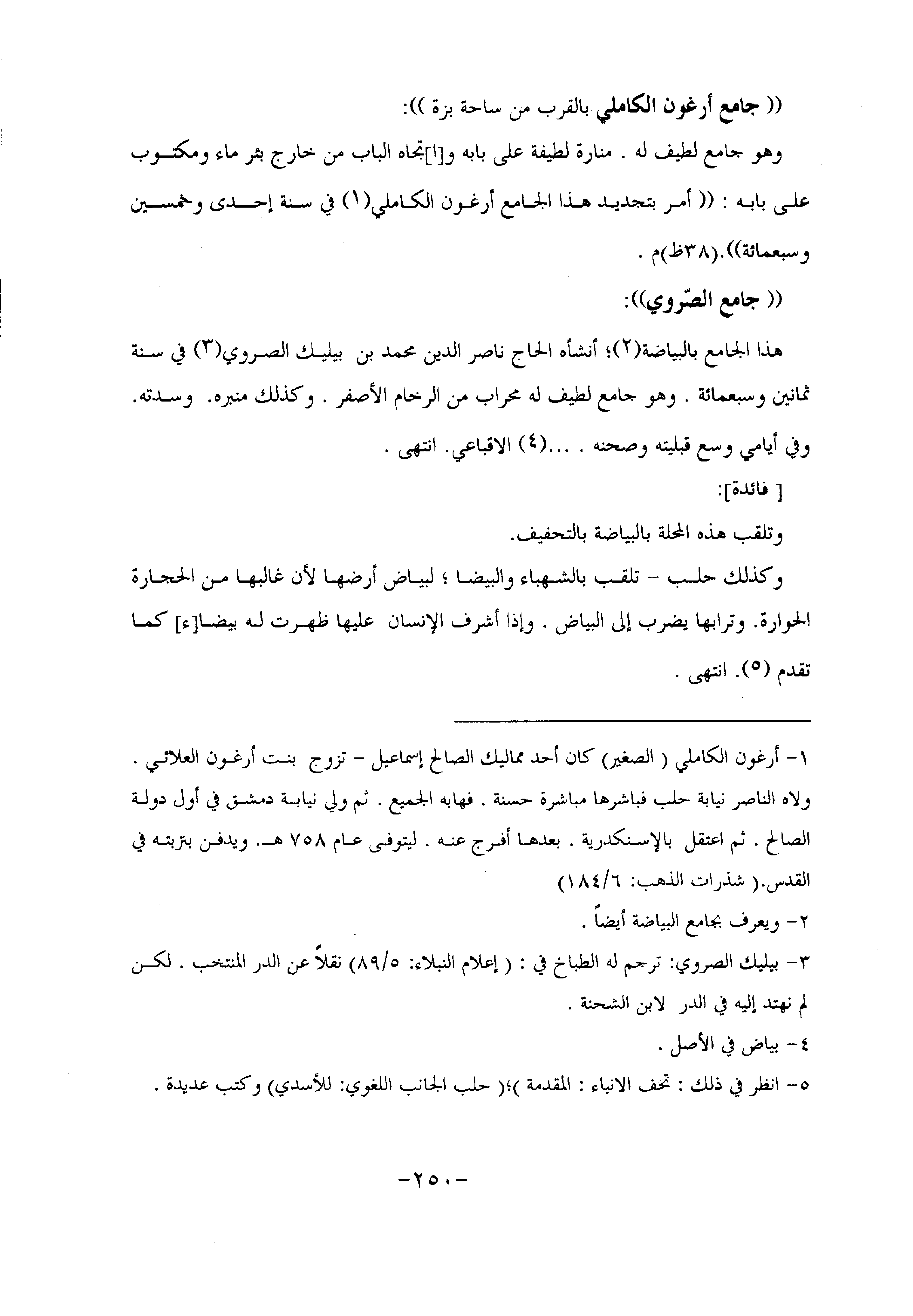هذا الجامع بالبياضة «2» ؛ أنشأه الحاج ناصر الدين محمد بن بيليك الصروي «3» في سنة ثمانين وسبعمائة. وهو جامع لطيف له محراب من الرخام الأصفر. وكذلك منبره. وسدته.