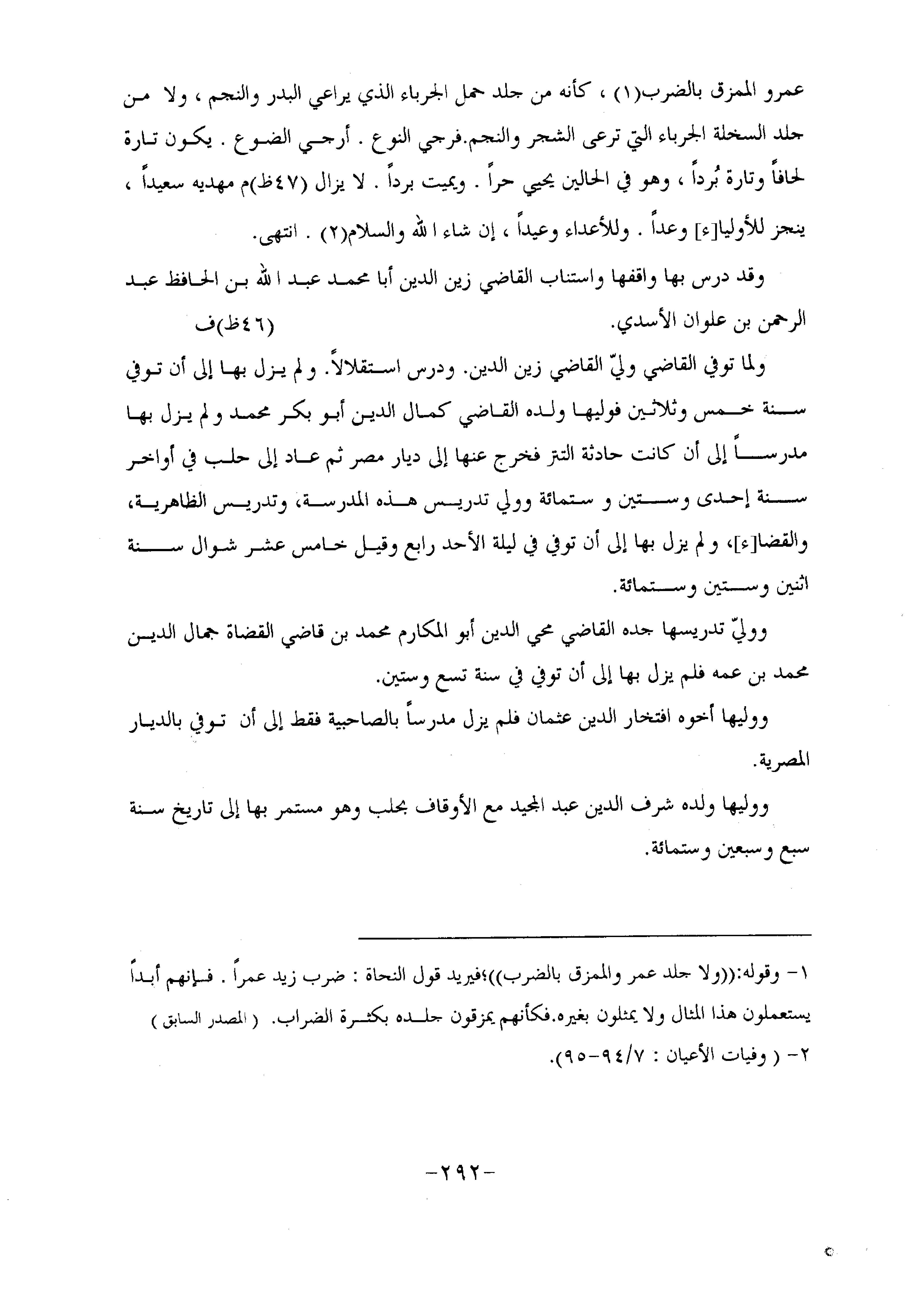 وقد درس بها واقفها واستناب القاضي زين الدين أبا محمد عبد الله بن الحافظ عبد الرحمن بن علوان الأسدي. (46 ظ) ف