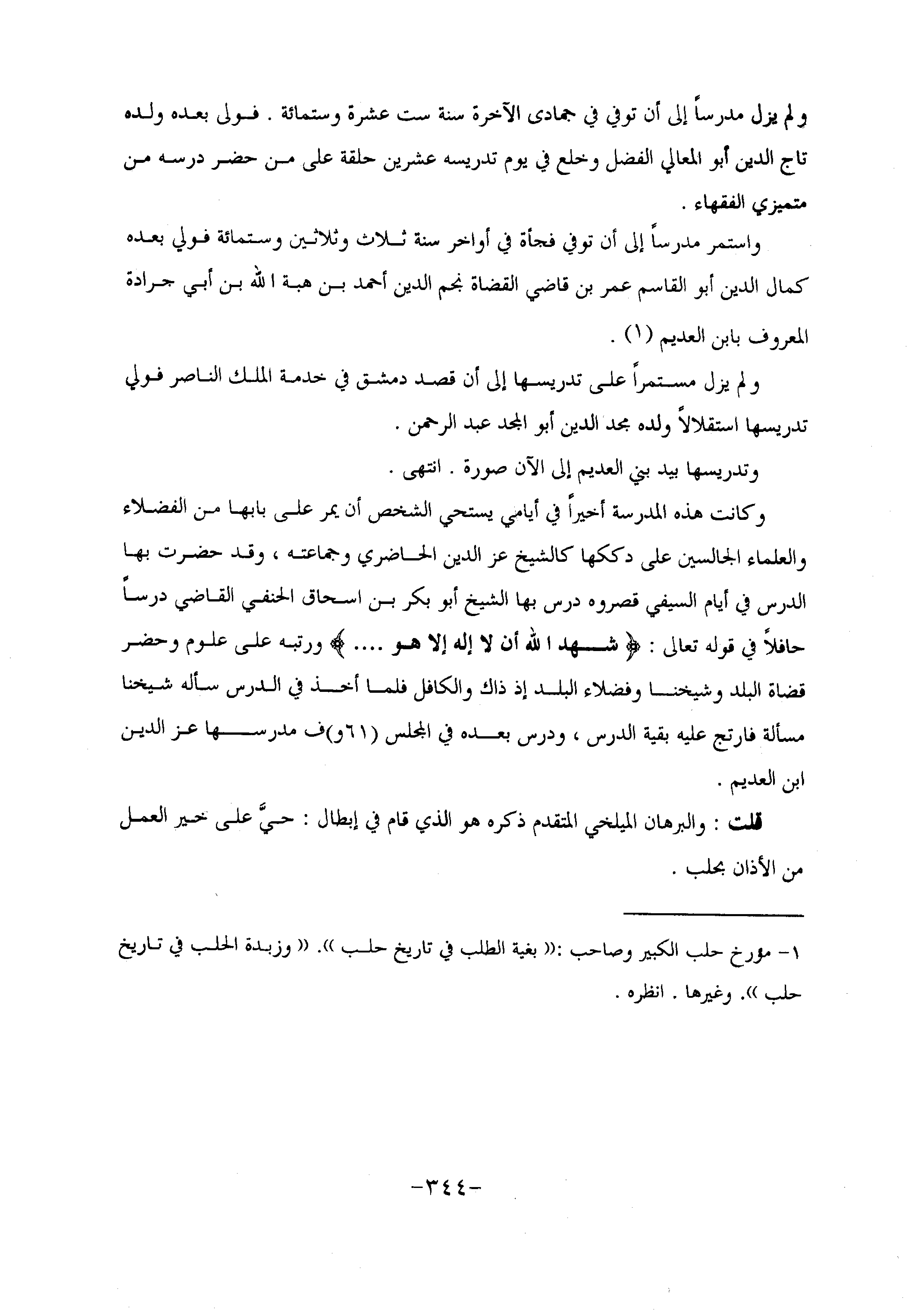 وتدريسها بيد بني العديم إلى الآن صورة. انتهى.