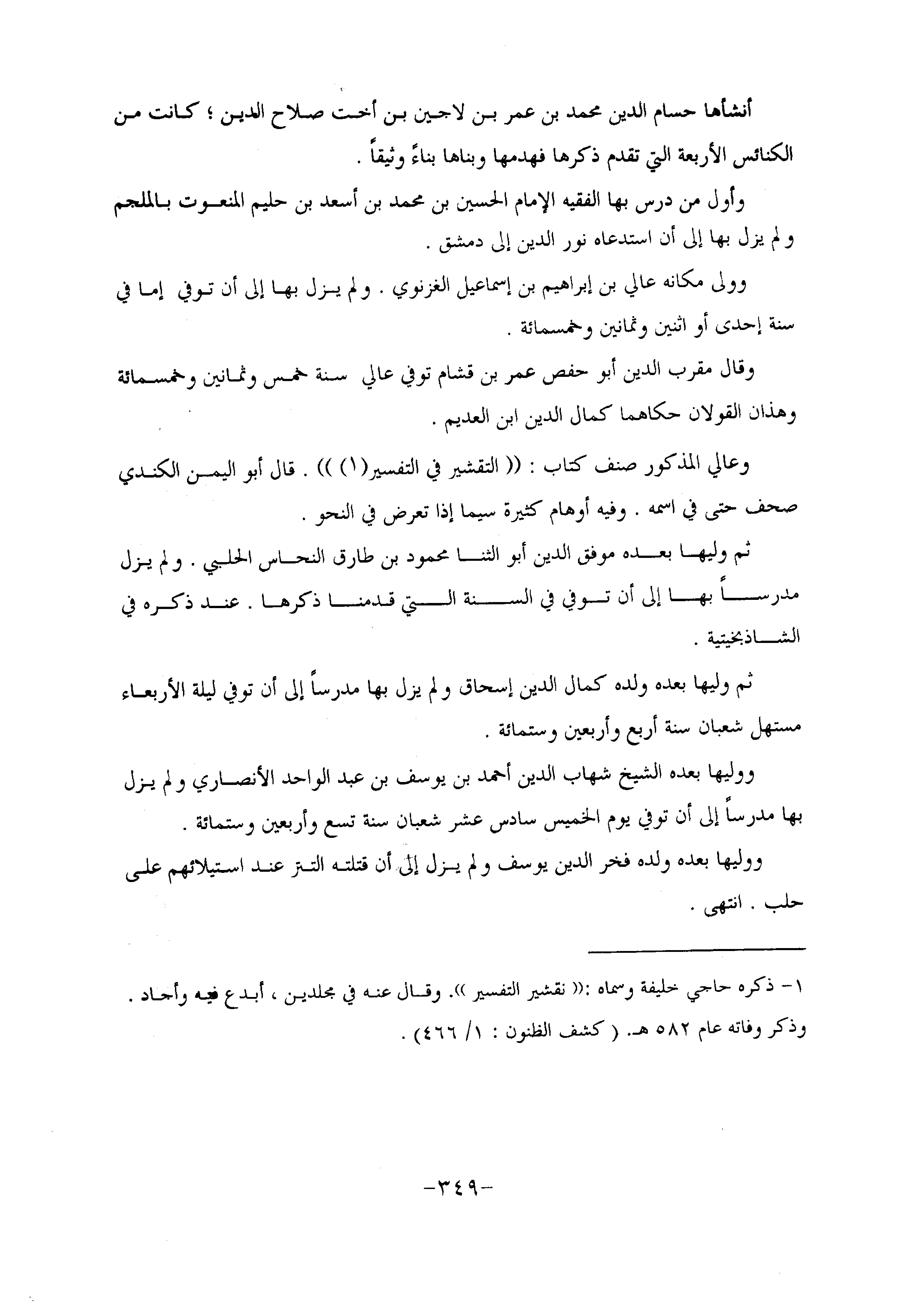 وقال مقرب الدين أبو حفص عمر بن قشام توفي عالي سنة خمس وثمانين وخمسمائة وهذان القولان حكاهما كمال الدين ابن العديم.
