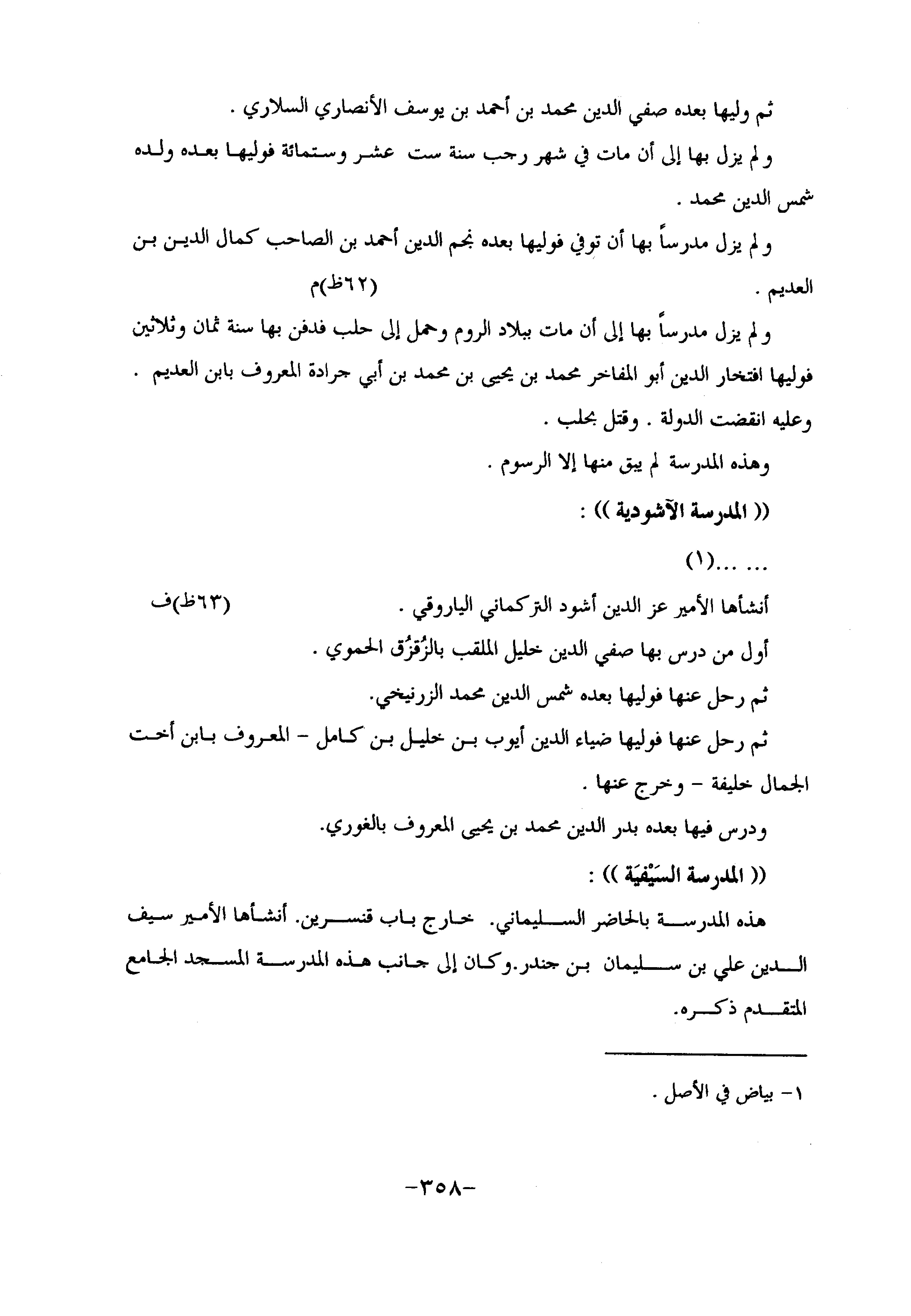 ولم يزل مدرسا بها أن توفي فوليها بعده نجم الدين أحمد بن الصاحب كمال الدين بن العديم. (62 ظ) م