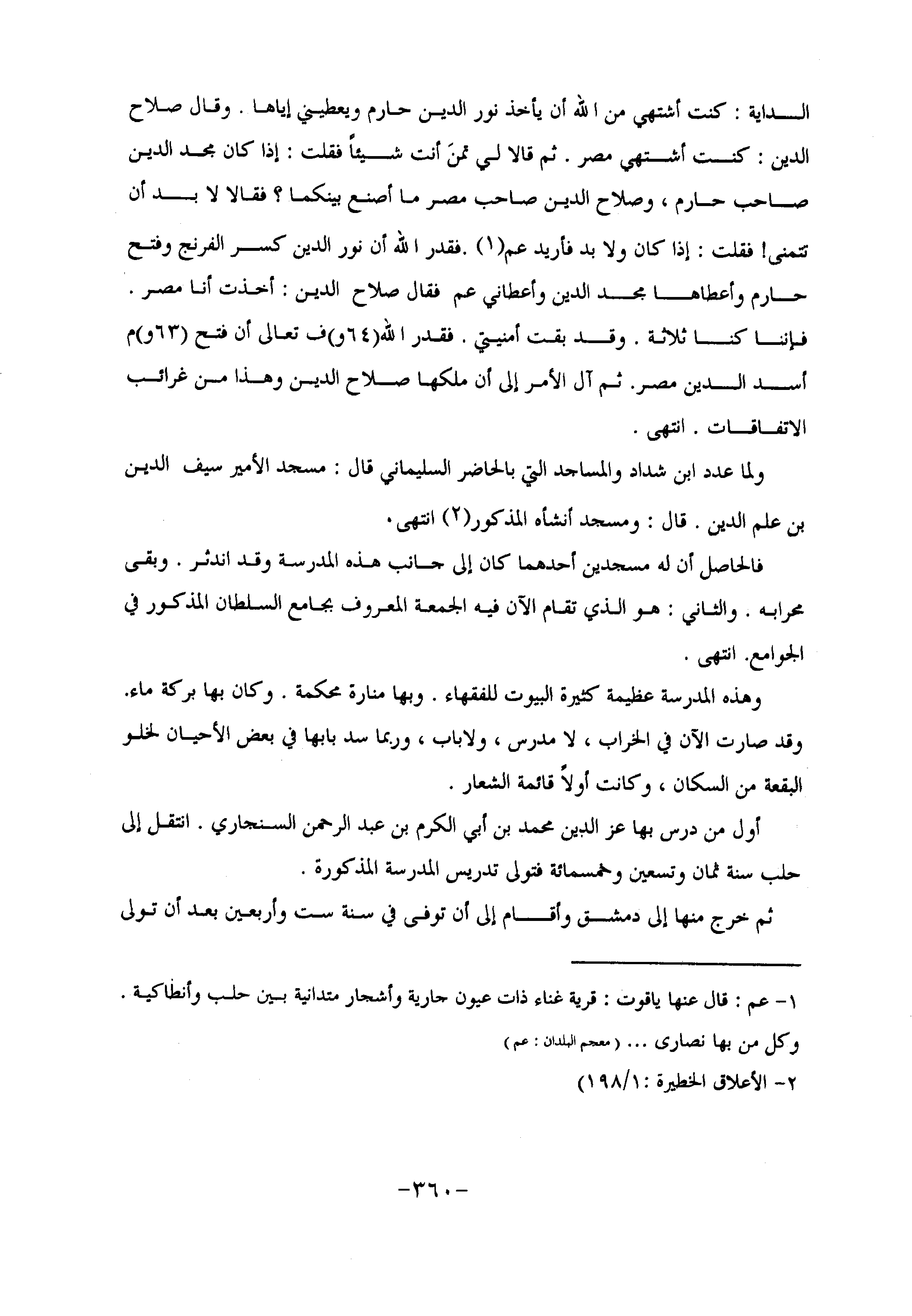 ولما عدد ابن شداد والمساجد التي بالحاضر السليماني قال: مسجد الأمير سيف الدين بن علم الدين. قال: ومسجد أنشأه المذكور «2» انتهى.