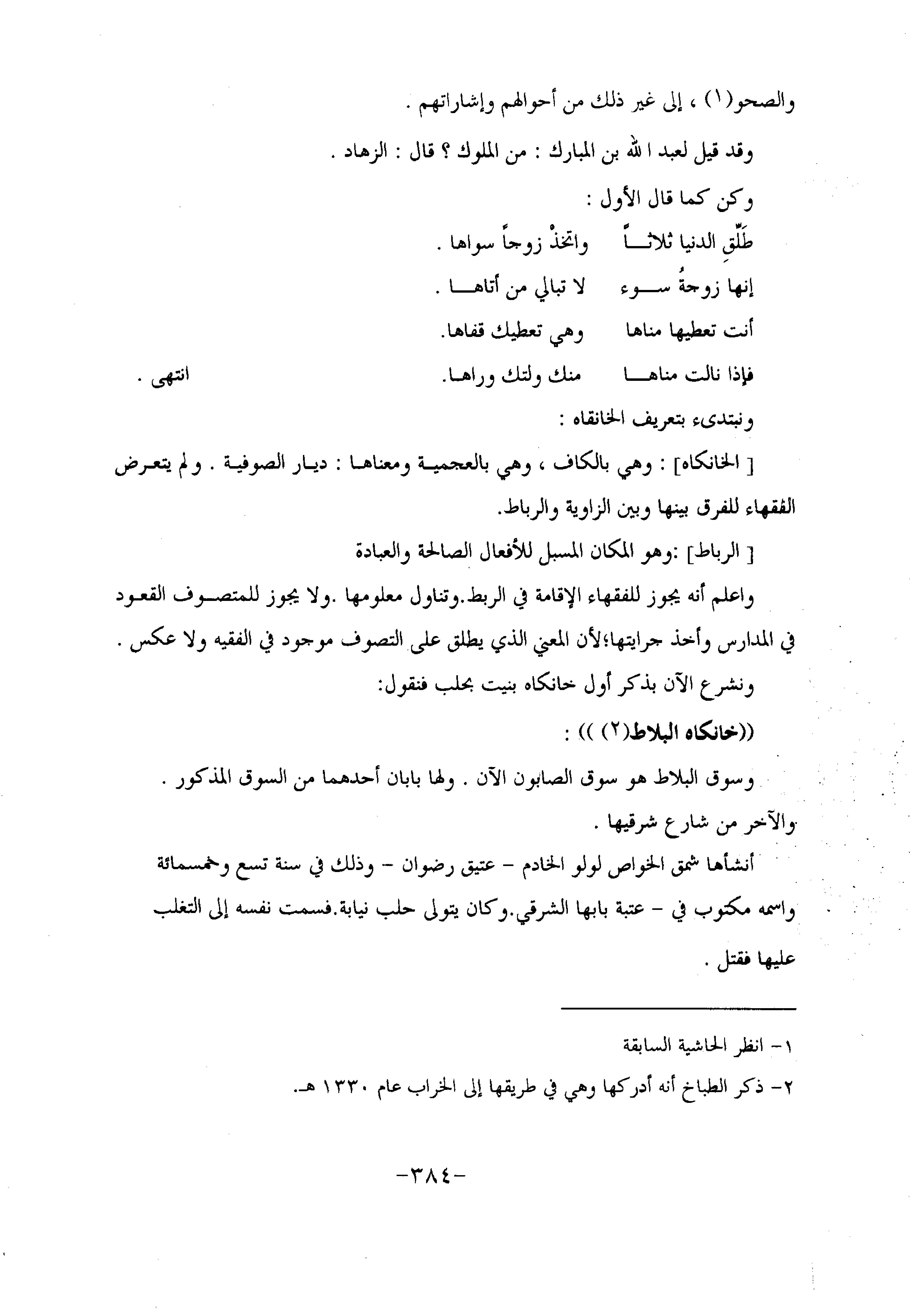 ونشرع الآن بذكر أول خانكاه بنيت بحلب فنقول: