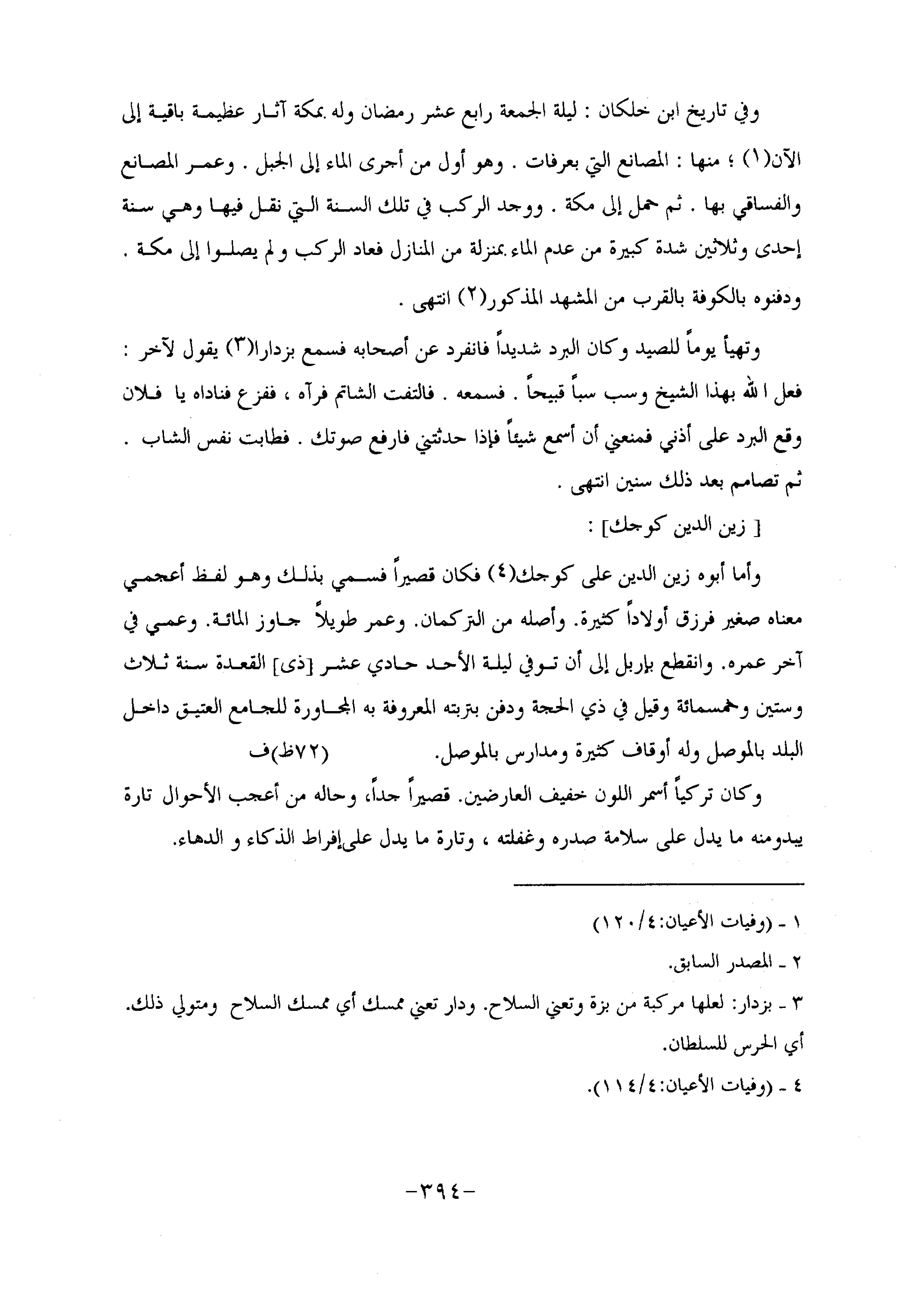 وفي تاريخ ابن خلكان: ليلة الجمعة رابع عشر رمضان وله بمكة آثار عظيمة باقية إلى الآن «1» ؛ منها: المصانع التي بعرفات. وهو أول من أجرى الماء إلى الجبل. وعمر المصانع والفساقي بها. ثم حمل إلى مكة. ووجد الركب في تلك السنة التي نقل فيها وهي سنة إحدى وثلاثين شدة كبيرة من عدم الماء بمنزلة من المنازل فعاد الركب ولم يصلوا إلى مكة.