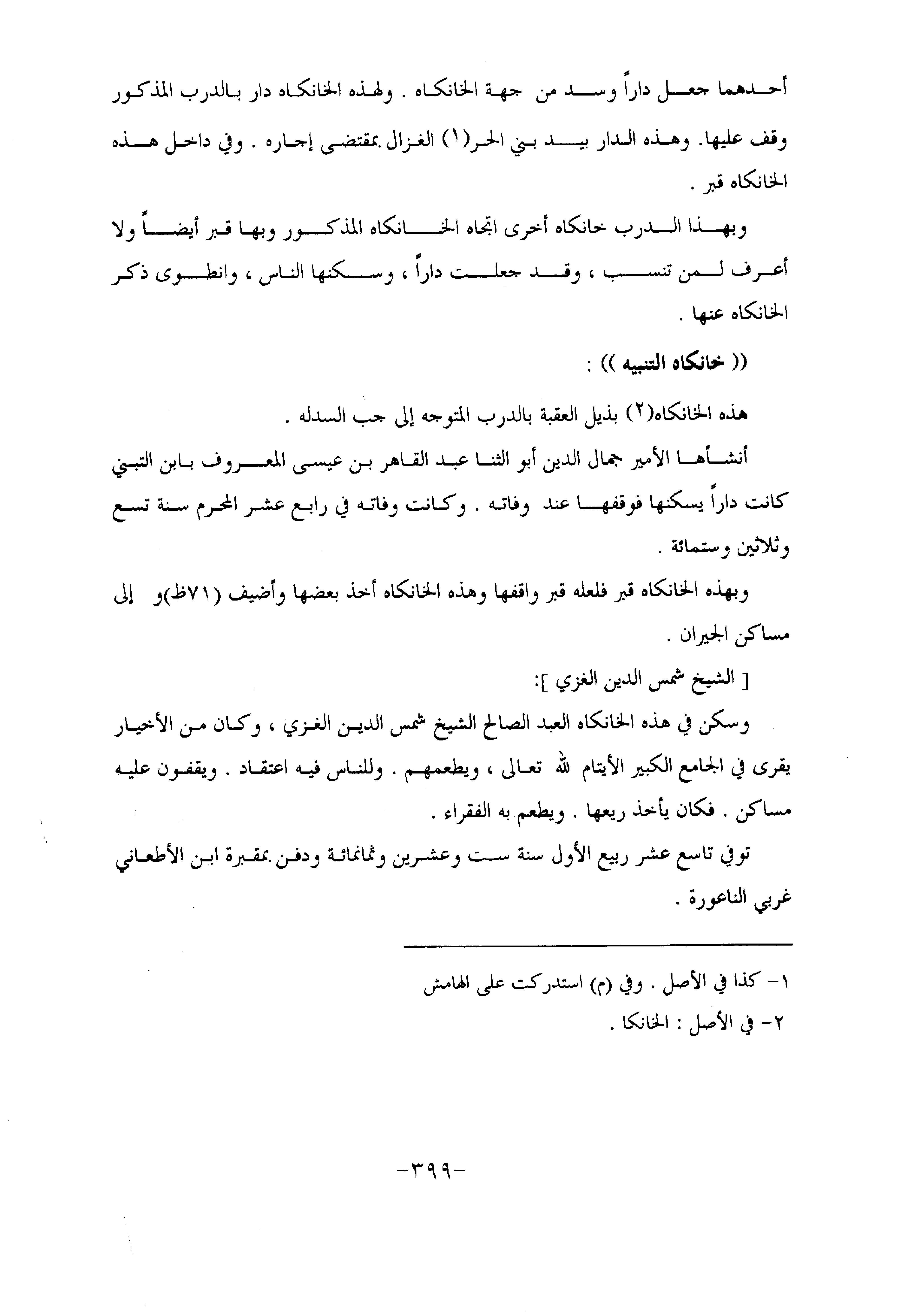 وبهذه الخانكاه قبر فلعله قبر واقفها وهذه الخانكاه أخذ بعضها وأضيف (71 ظ) وإلى مساكن الجيران.