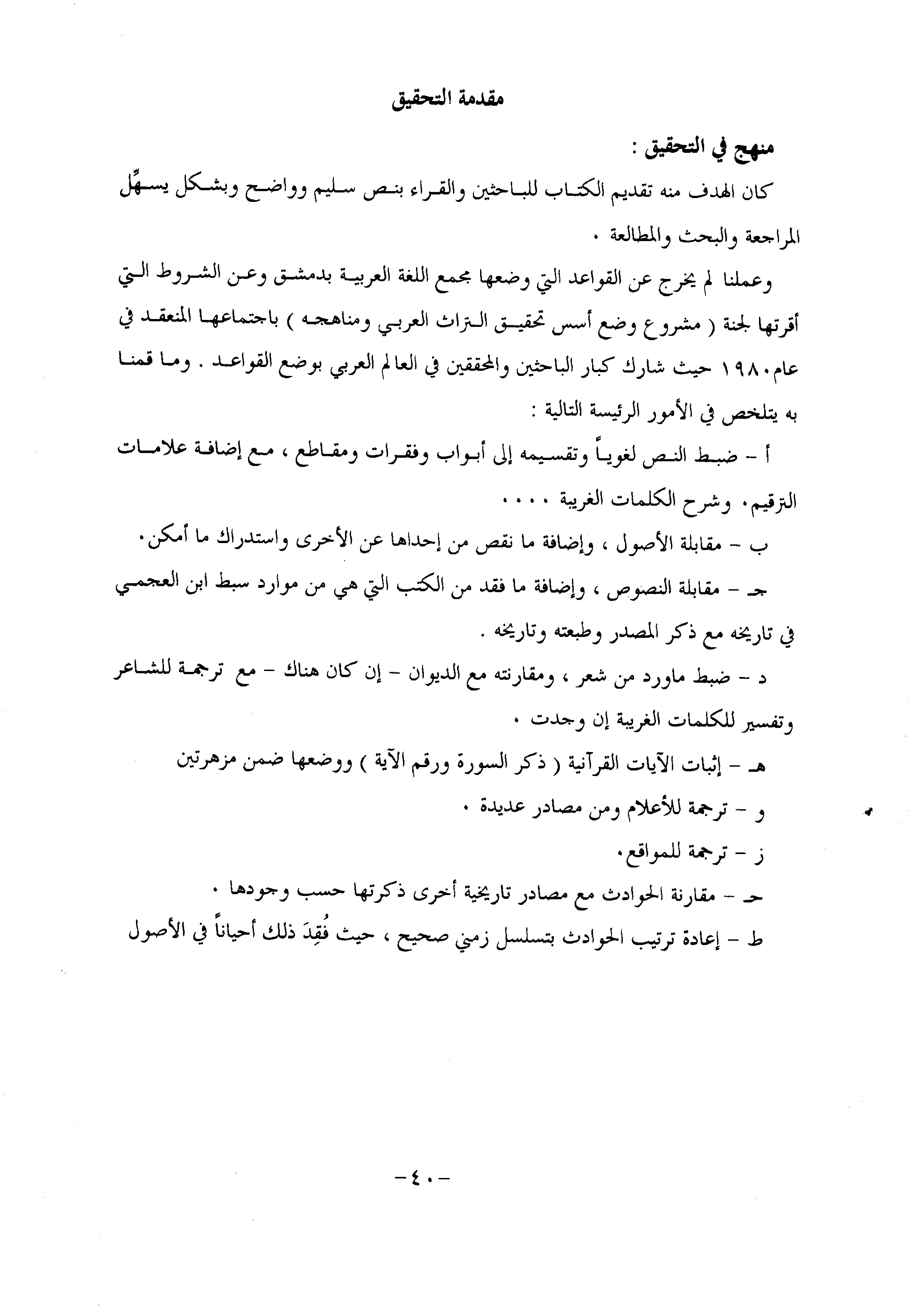 ط- إعادة ترتيب الحوادث بتسلسل زمني صحيح، حيث فقد ذلك أحيانا في الأصول