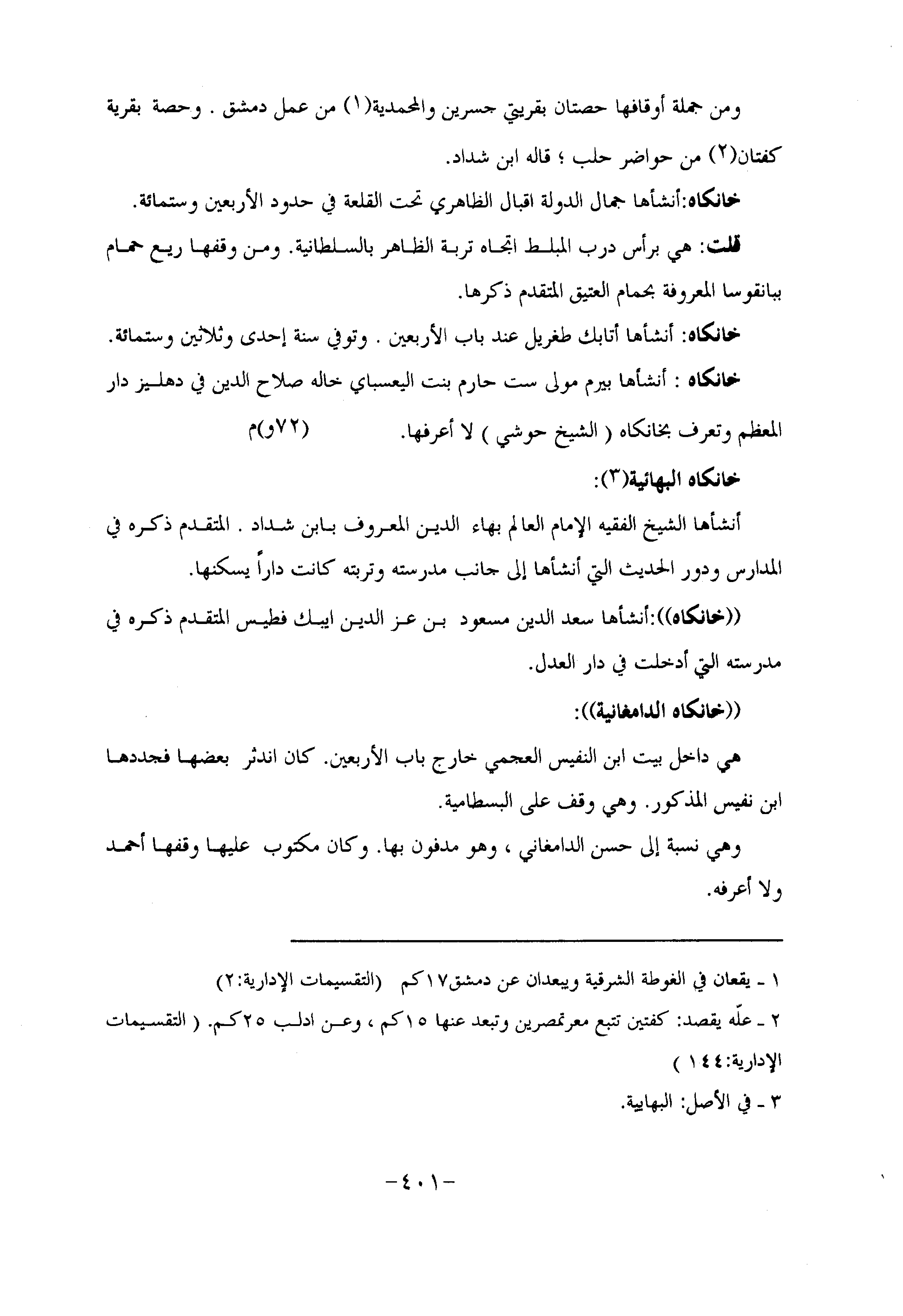 ومن جملة أوقافها حصتان بقريتي جسرين والمحمدية «1» من عمل دمشق. وحصة بقرية كفتان «2» من حواضر حلب؛ قاله ابن شداد.