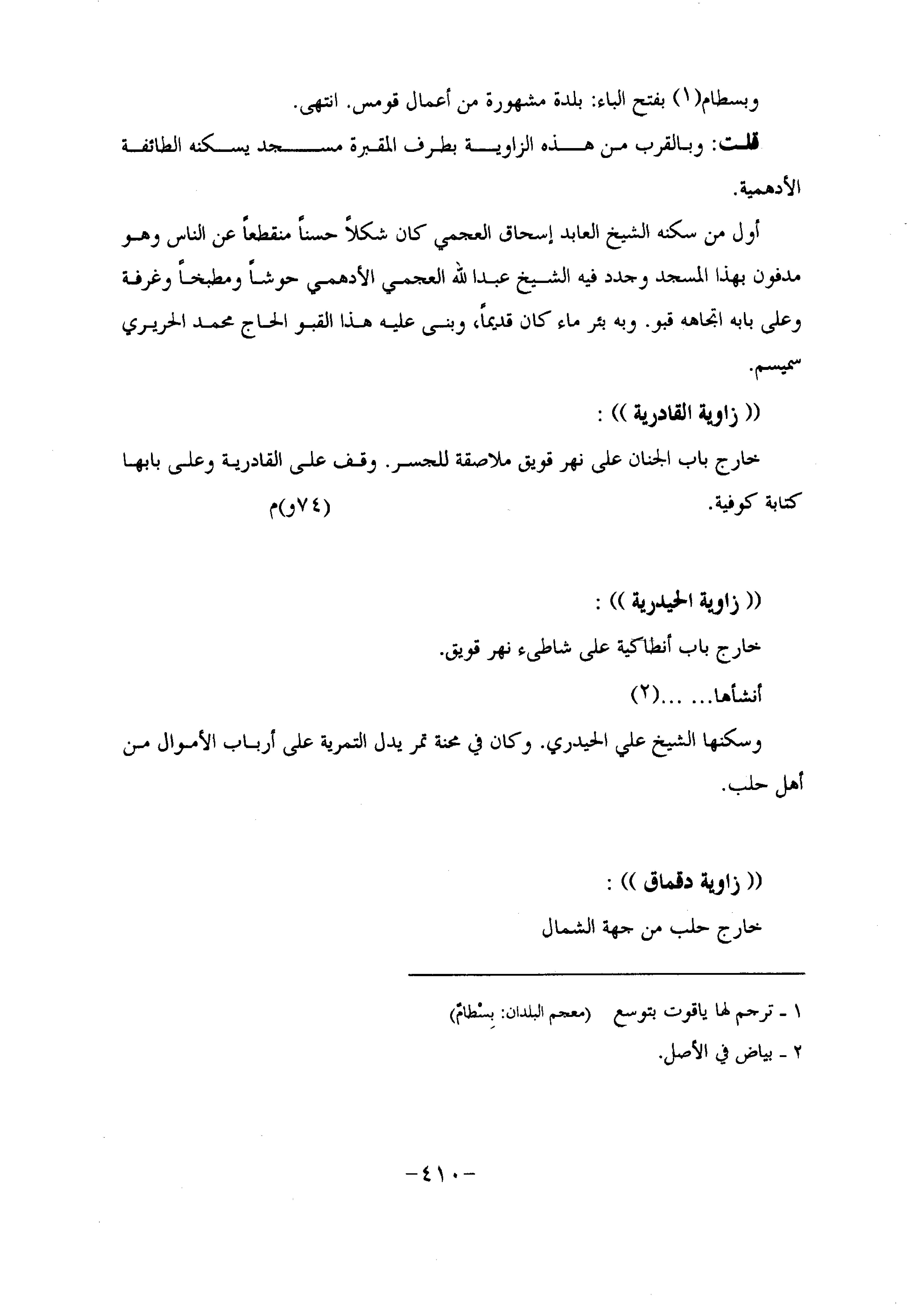 قلت: وبالقرب من هذه الزاوية بطرف المقبرة مسجد يسكنه الطائفة الأدهمية.