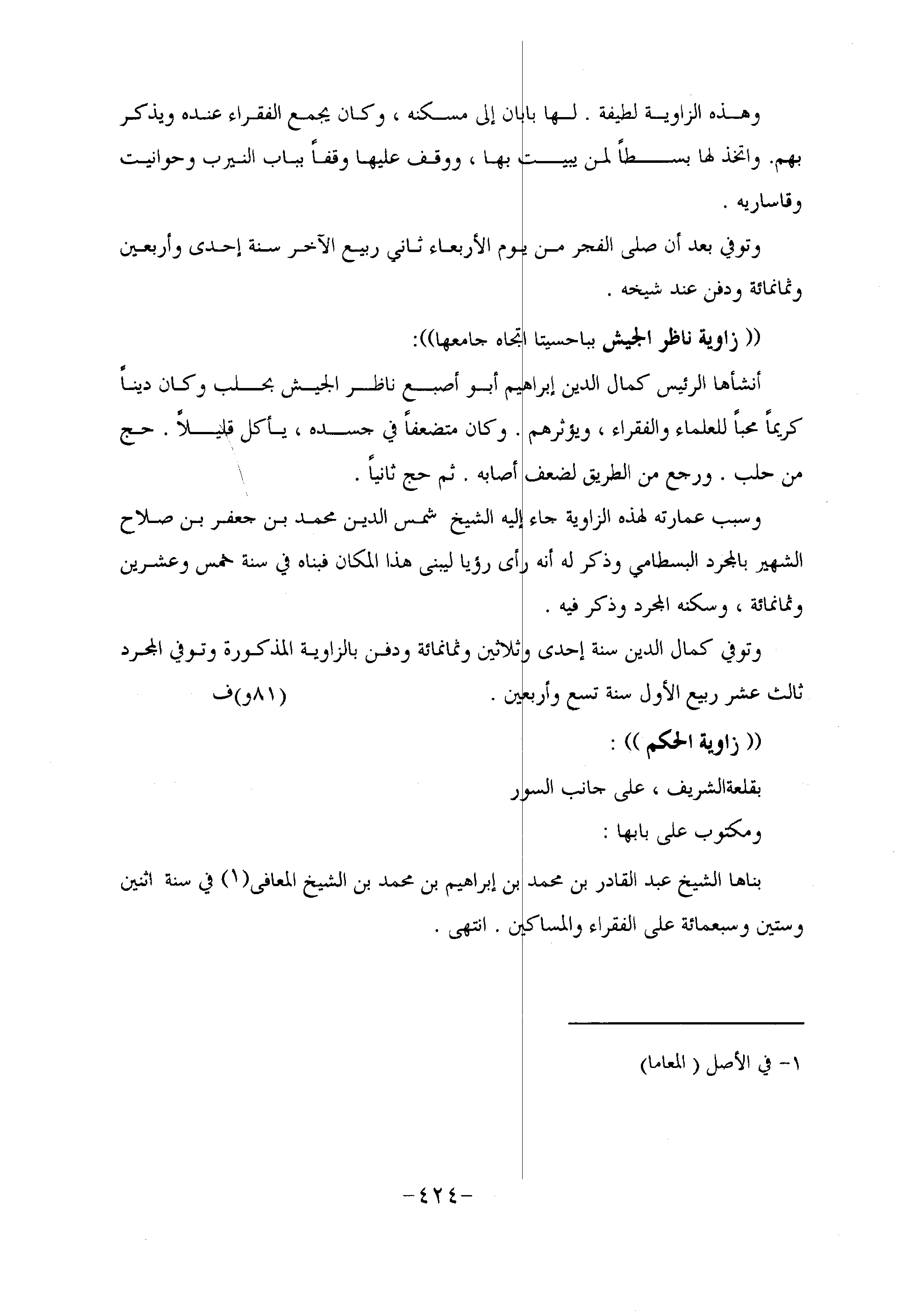 وتوفي كمال الدين سنة إحدى وثلاثين وثمانمائة ودفن بالزاوية المذكورة وتوفي المجرد ثالث عشر ربيع الأول سنة تسع وأربعين. (81 و) ف