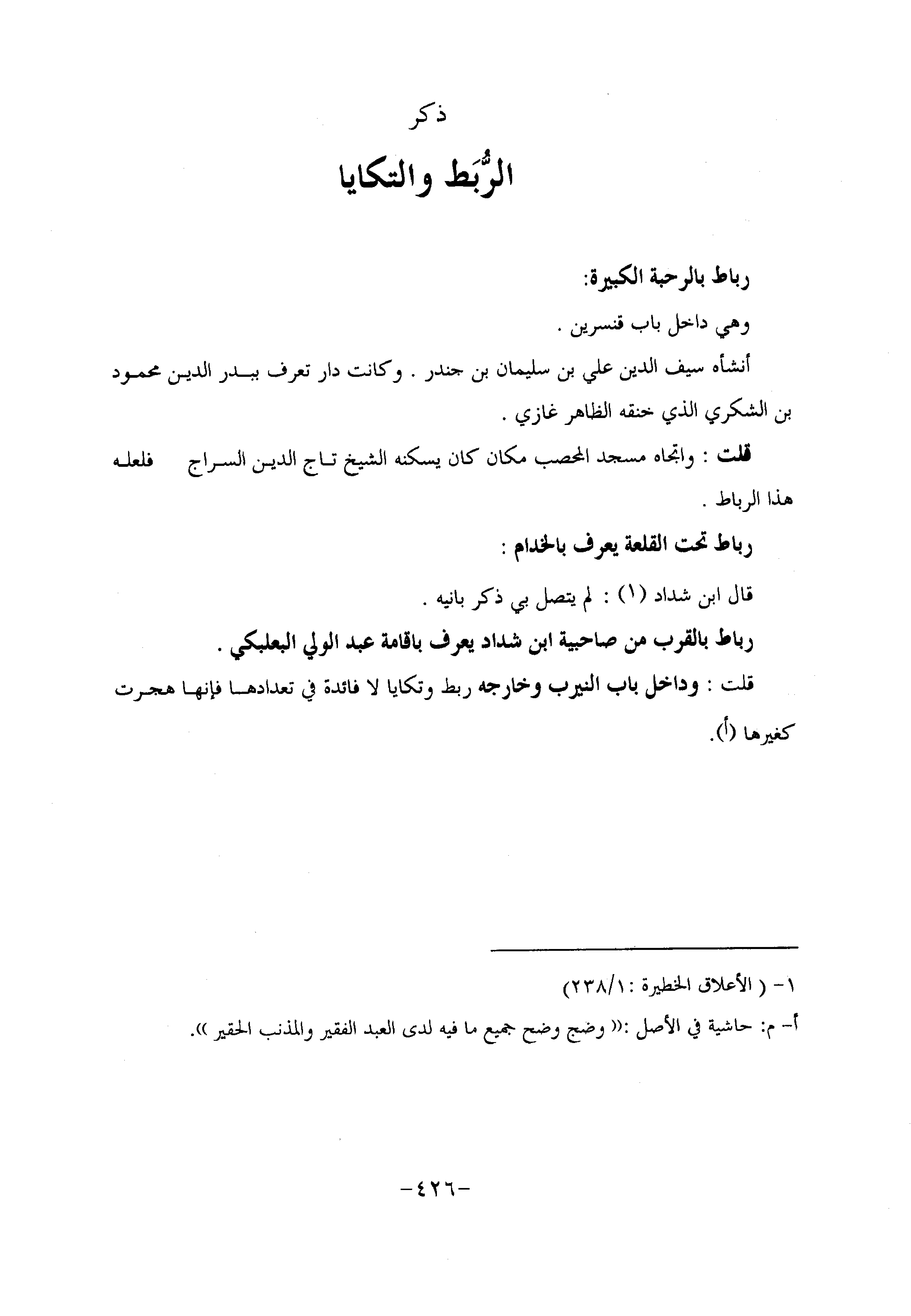 قلت: وداخل باب النيرب وخارجه ربط وتكايا لا فائدة في تعدادها فإنها هجرت كغيرها أ.