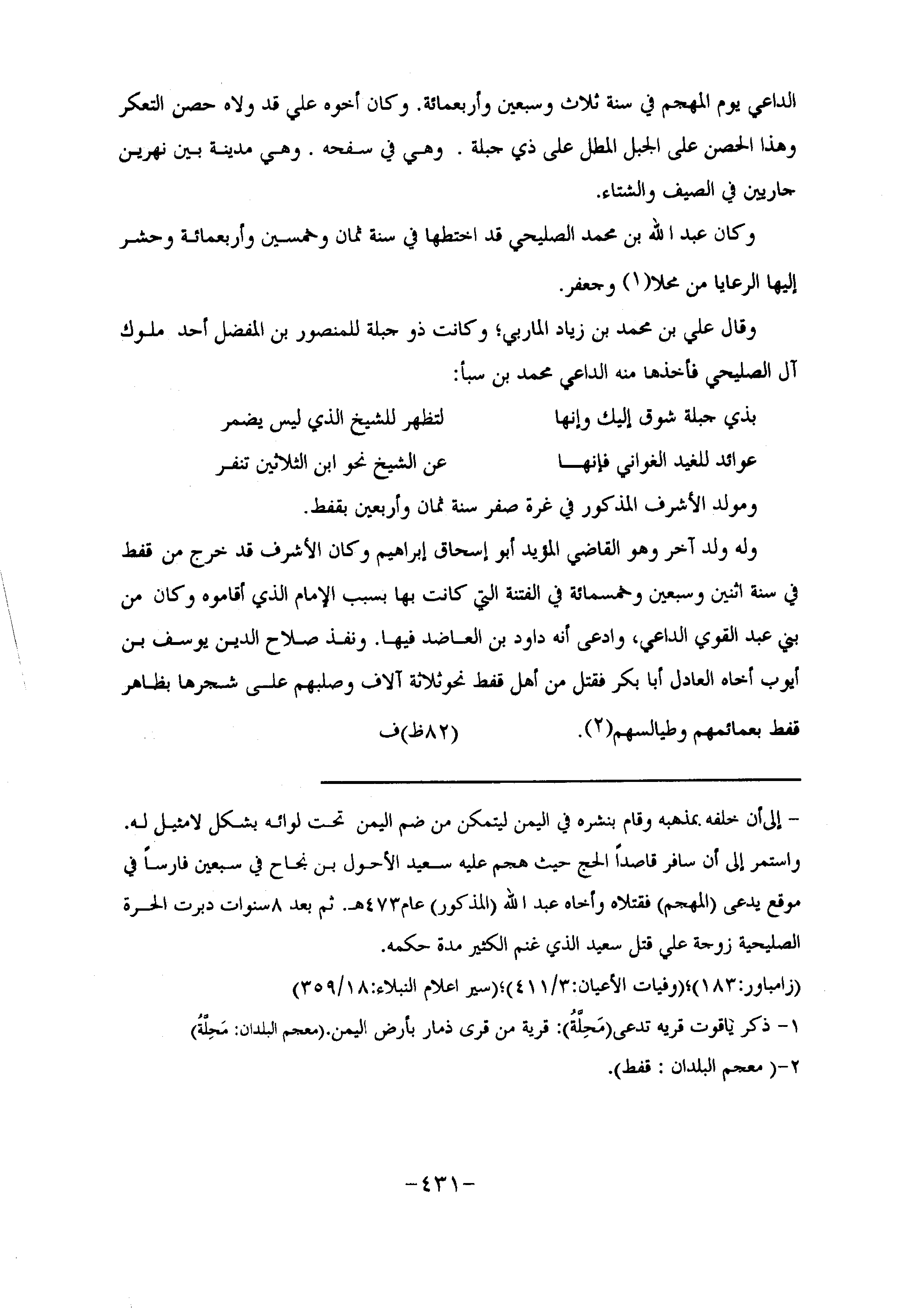 وقال علي بن محمد بن زياد الماربي؛ وكانت ذو جبلة للمنصور بن المفضل أحد ملوك آل الصليحي فأخذها منه الداعي محمد بن سبأ: