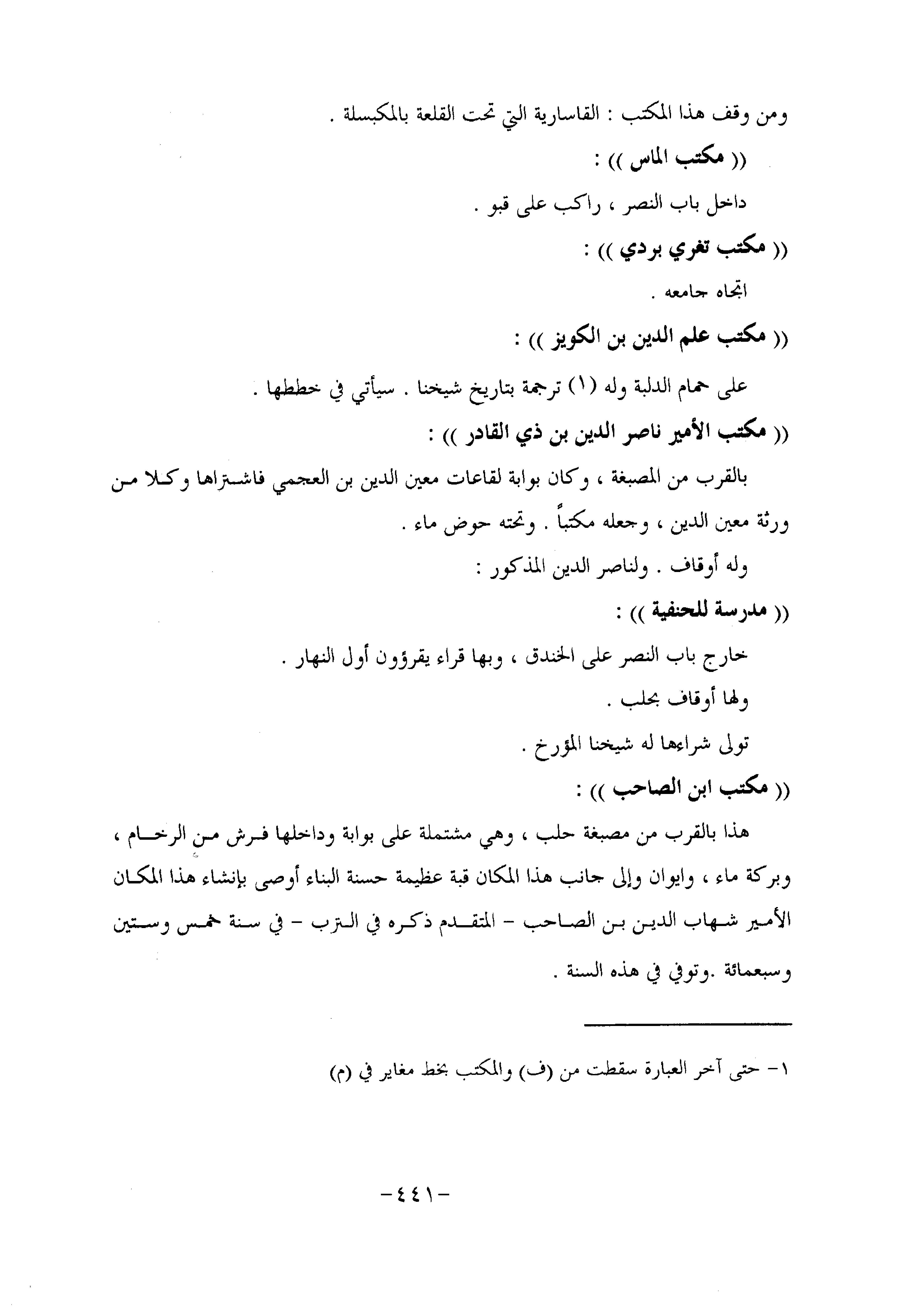 ومن وقف هذا المكتب: القاسارية التي تحت القلعة بالمكبسلة.