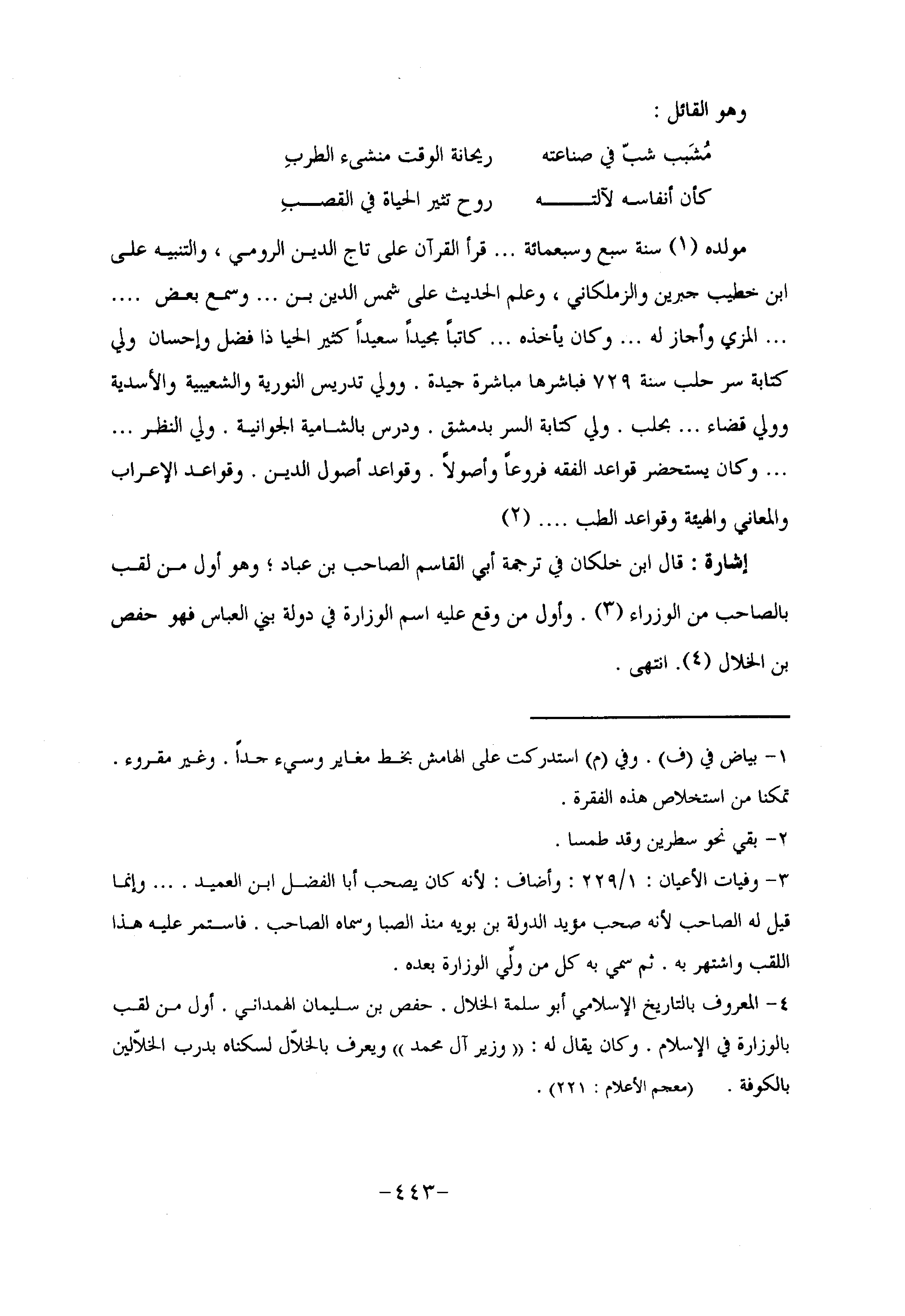 إشارة: قال ابن خلكان في ترجمة أبي القاسم الصاحب بن عباد؛ وهو أول من لقب بالصاحب من الوزراء «3» . وأول من وقع عليه اسم الوزارة في دولة بني العباس فهو حفص بن الخلال «4» . انتهى.