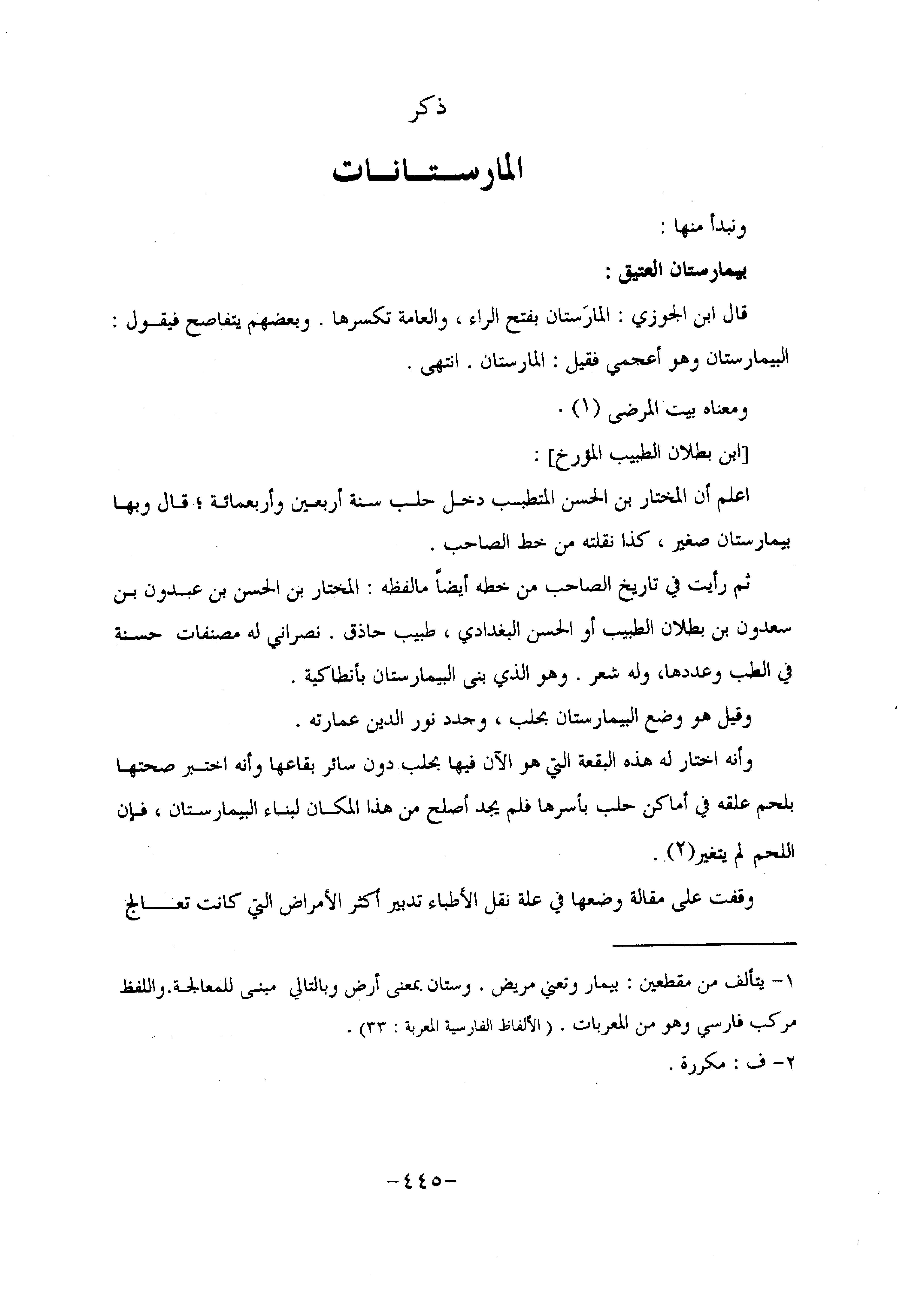 قال ابن الجوزي: المارستان بفتح الراء، والعامة تكسرها. وبعضهم يتفاصح فيقول: