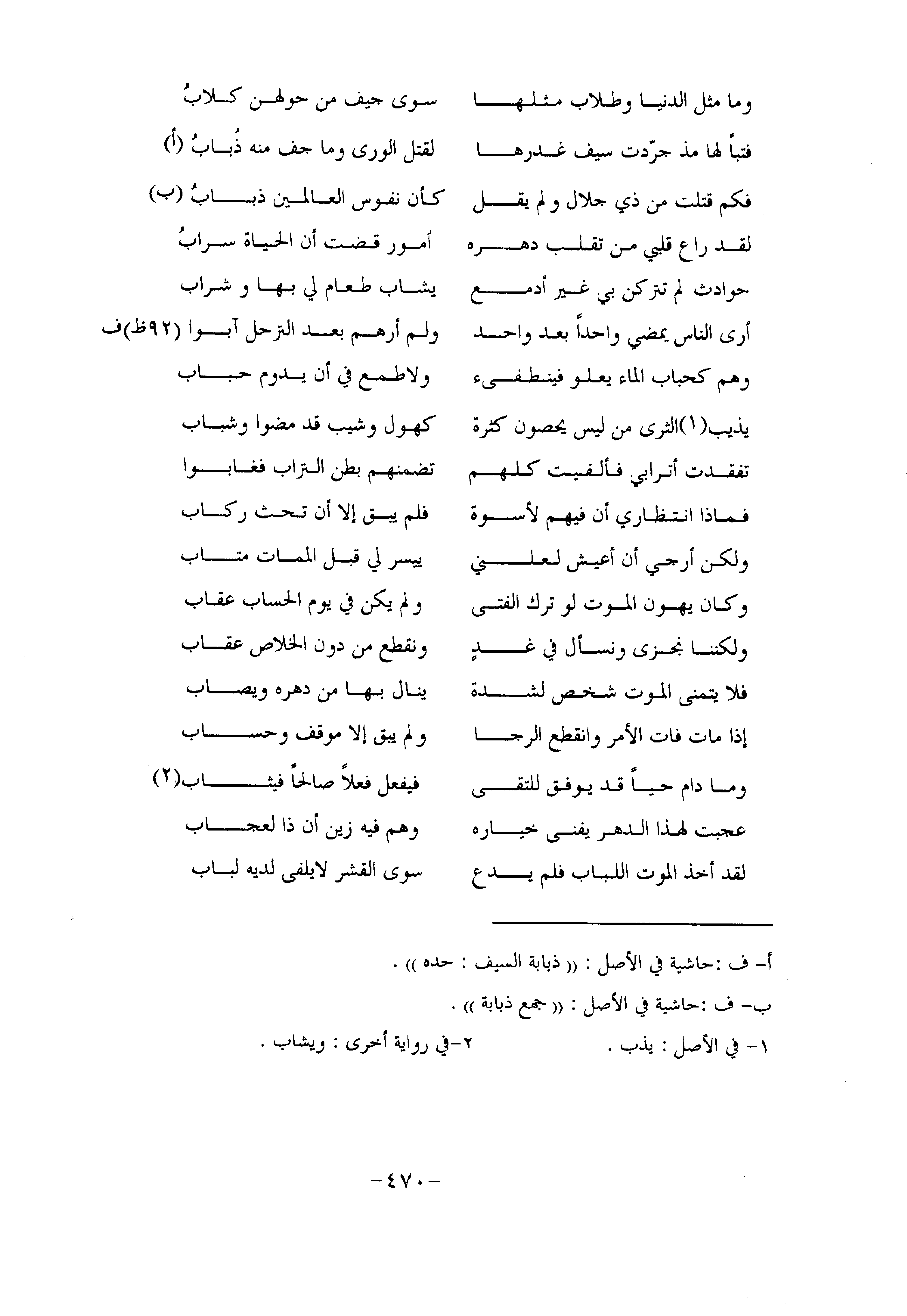 فتبا لها مذ جرّدت سيف غدرها ... لقتل الورى وما جف منه ذباب أ