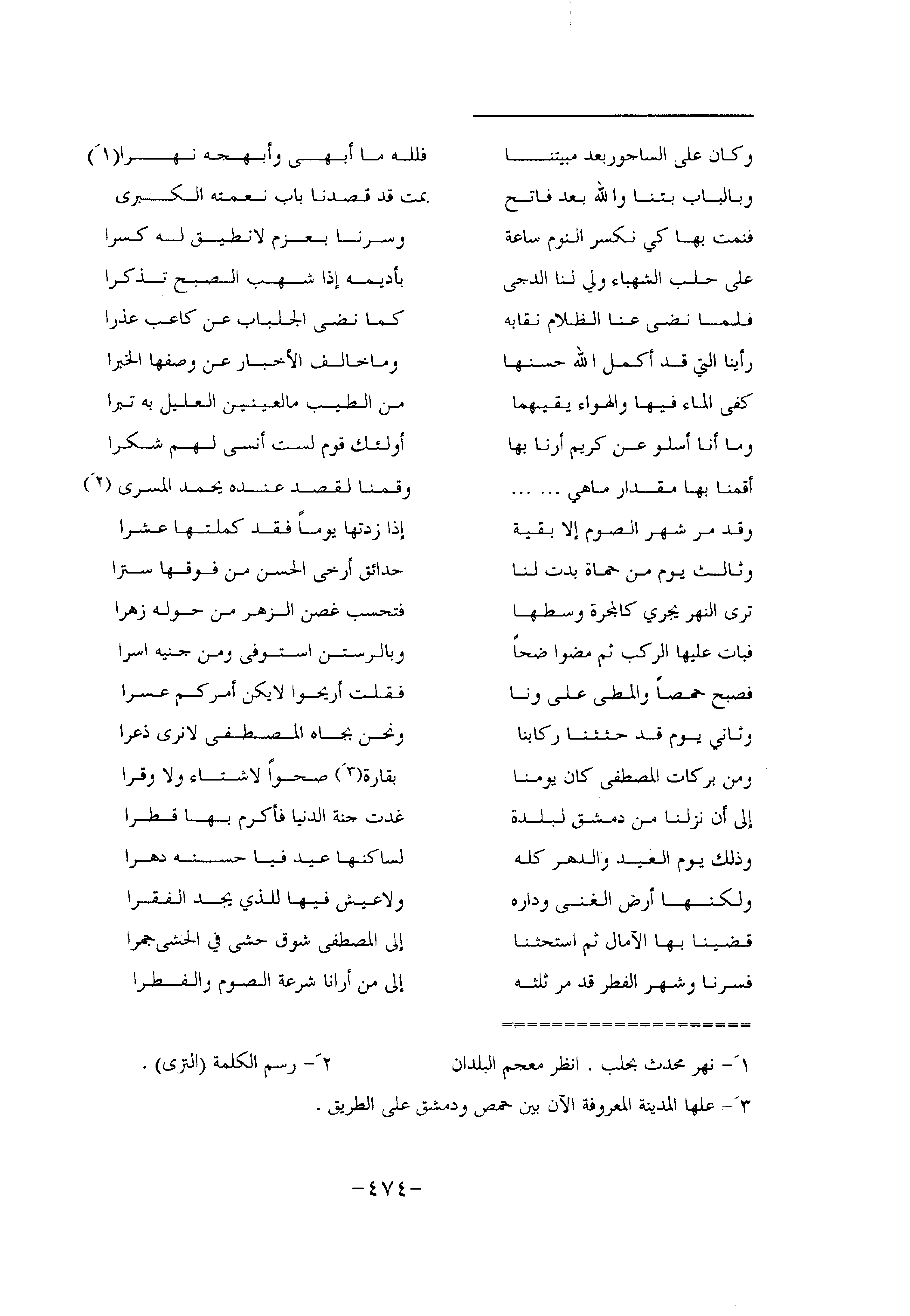 أقمنا بها مقدار ما هي...... ... وقمنا لقصد عنده يحمد المسرى «2»