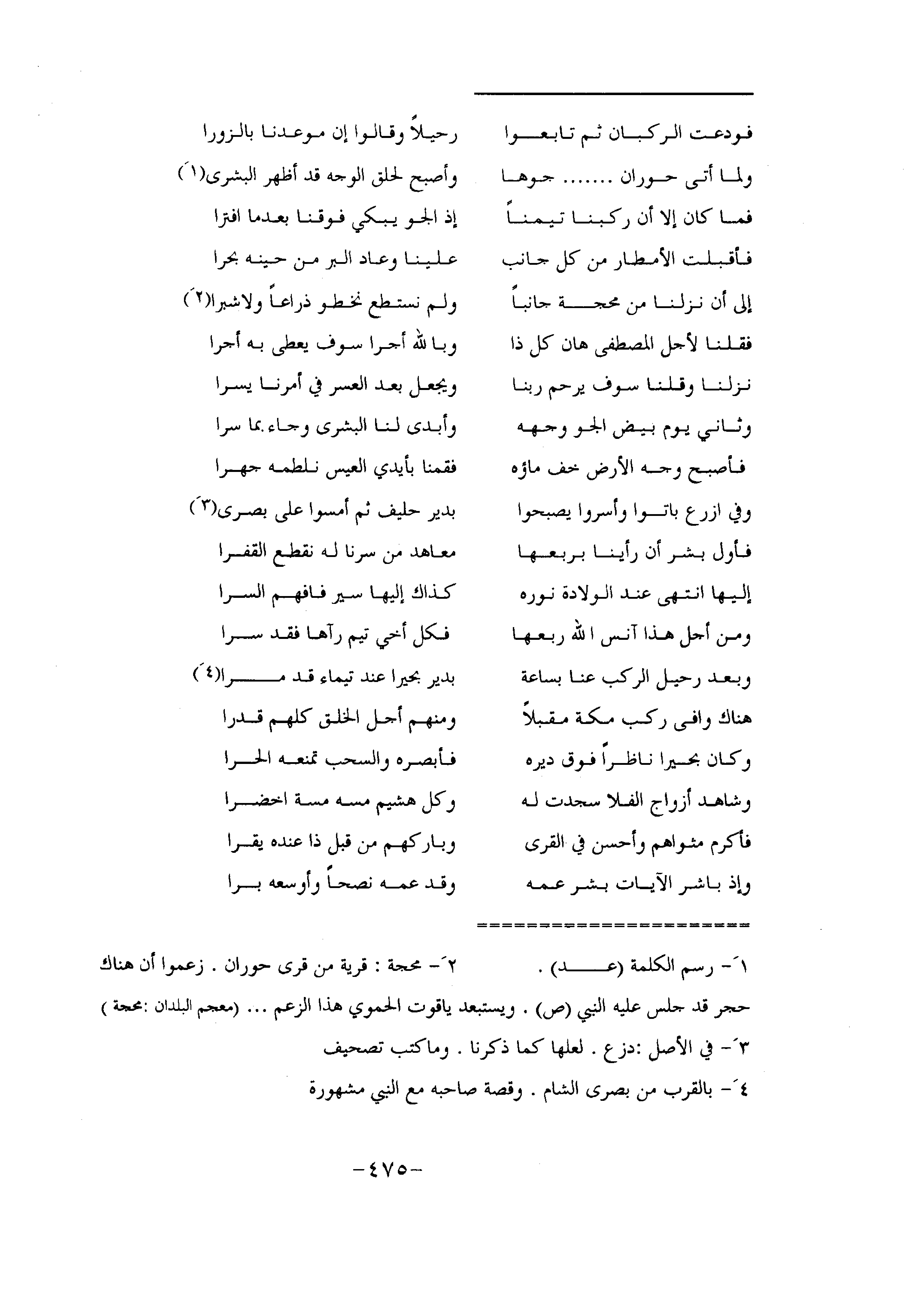وبعد رحيل الركب عنا بساعة ... بدير بحيرا عند تيماء قد مرا «4»