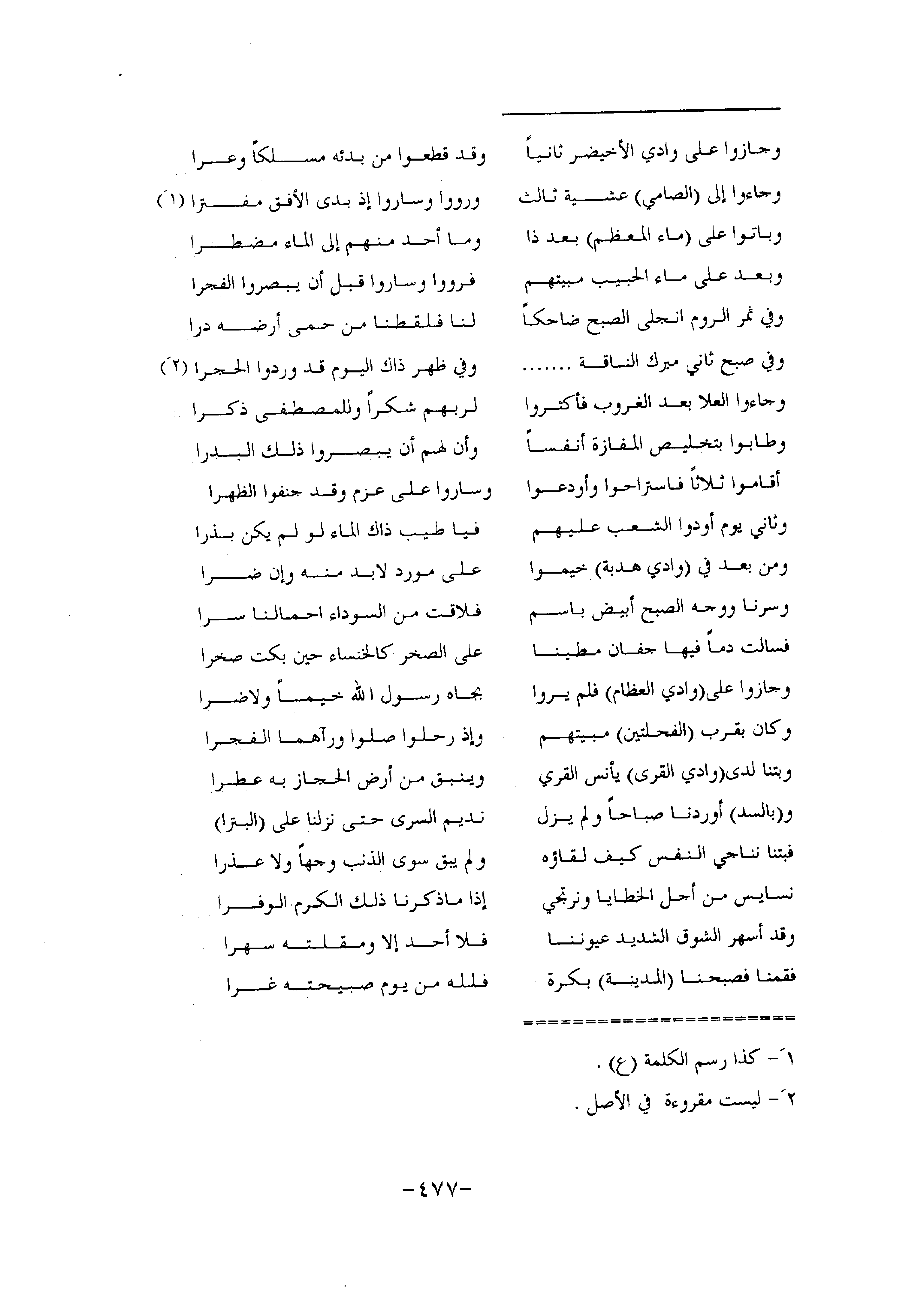 وكان بقرب (الفحلتين) مبيتهم ... وإذ رحلوا صلوا ورآهما الفجرا