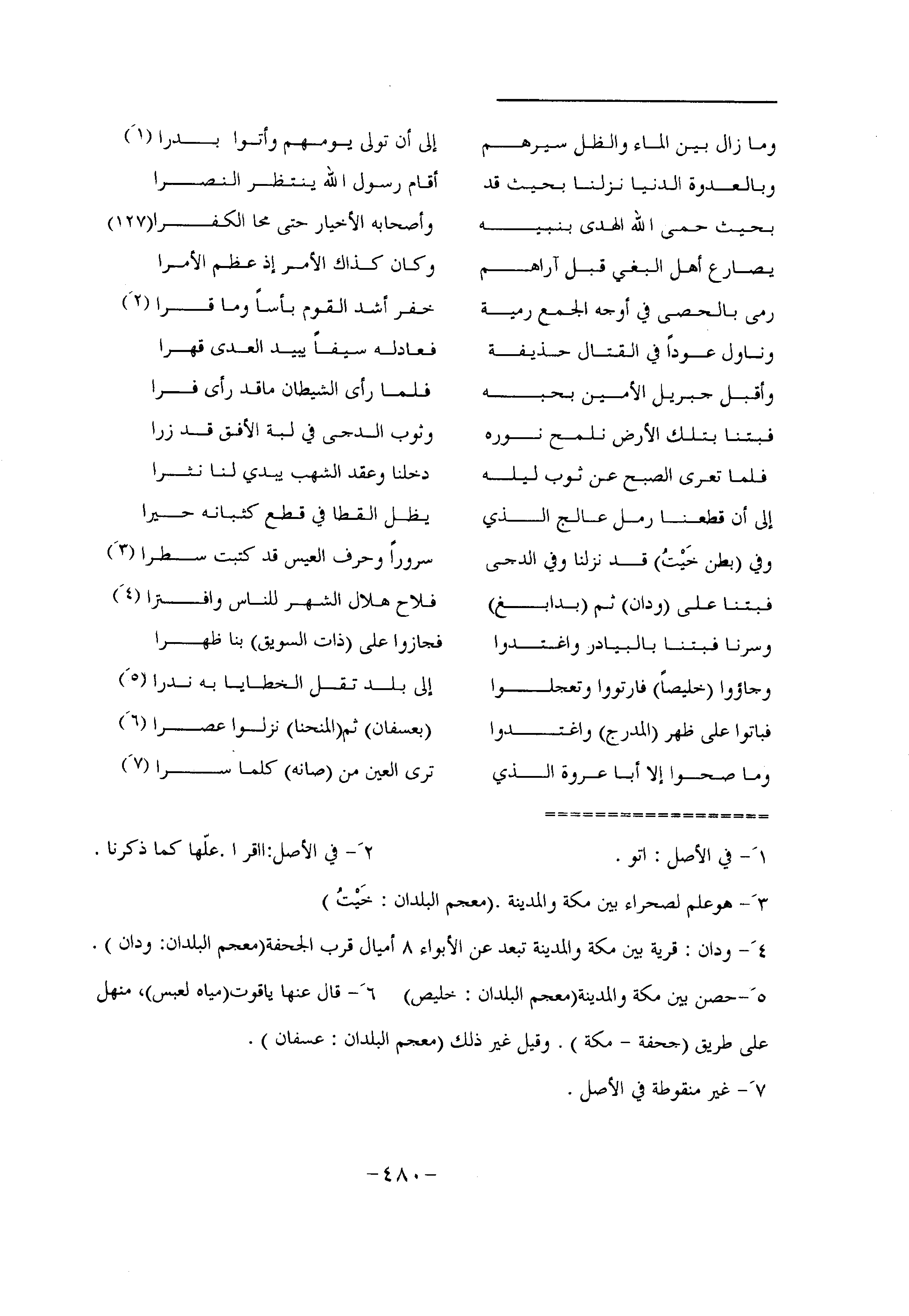 وما زال بين الماء والظل سيرهم ... إلى أن تولى يومهم وأتوا بدرا «1»