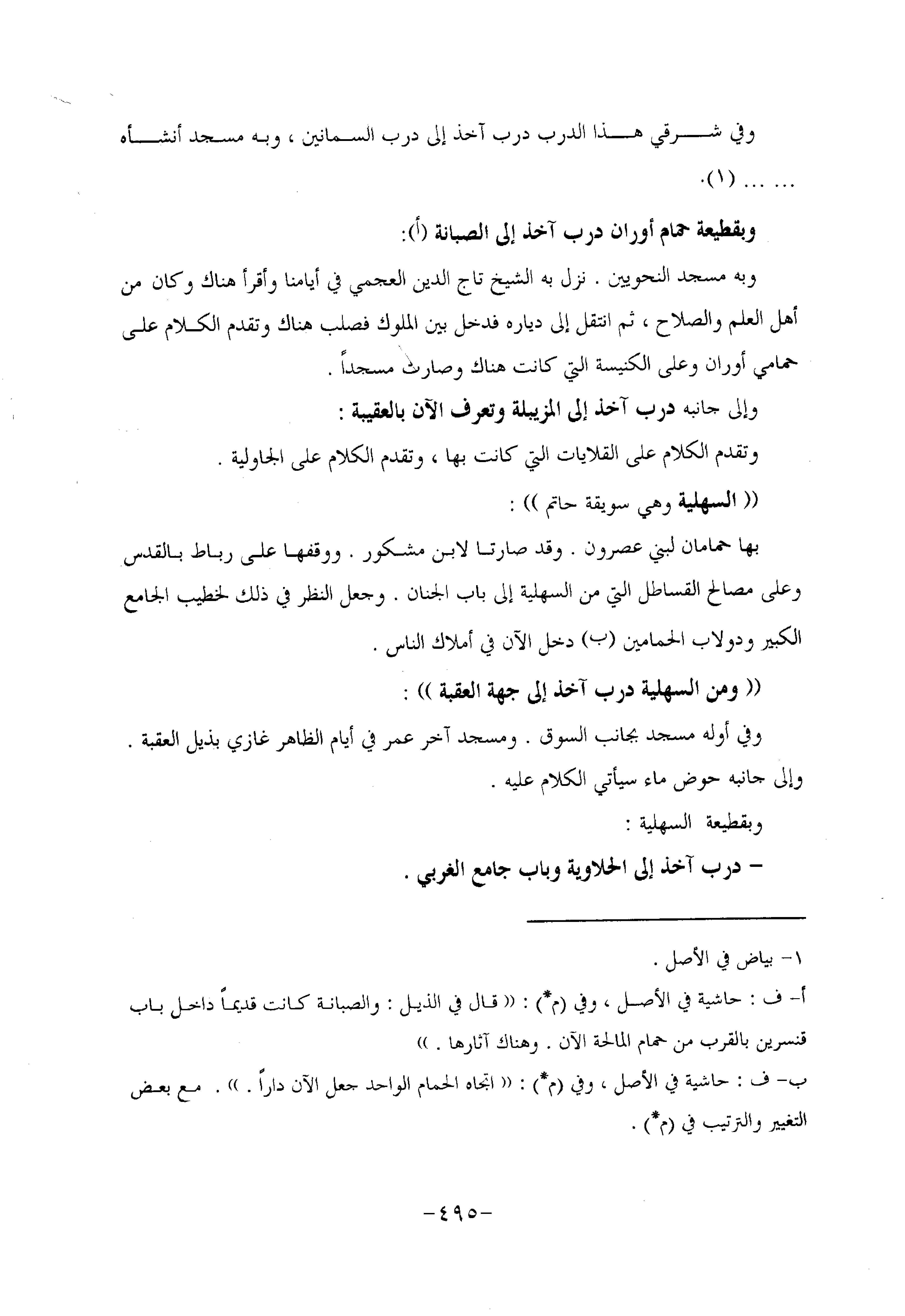 وبه مسجد النحويين. نزل به الشيخ تاج الدين العجمي في أيامنا وأقرأ هناك وكان من أهل العلم والصلاح، ثم انتقل إلى دياره فدخل بين الملوك فصلب هناك وتقدم الكلام على حمامي أوران وعلى الكنيسة التي كانت هناك وصارت مسجدا.