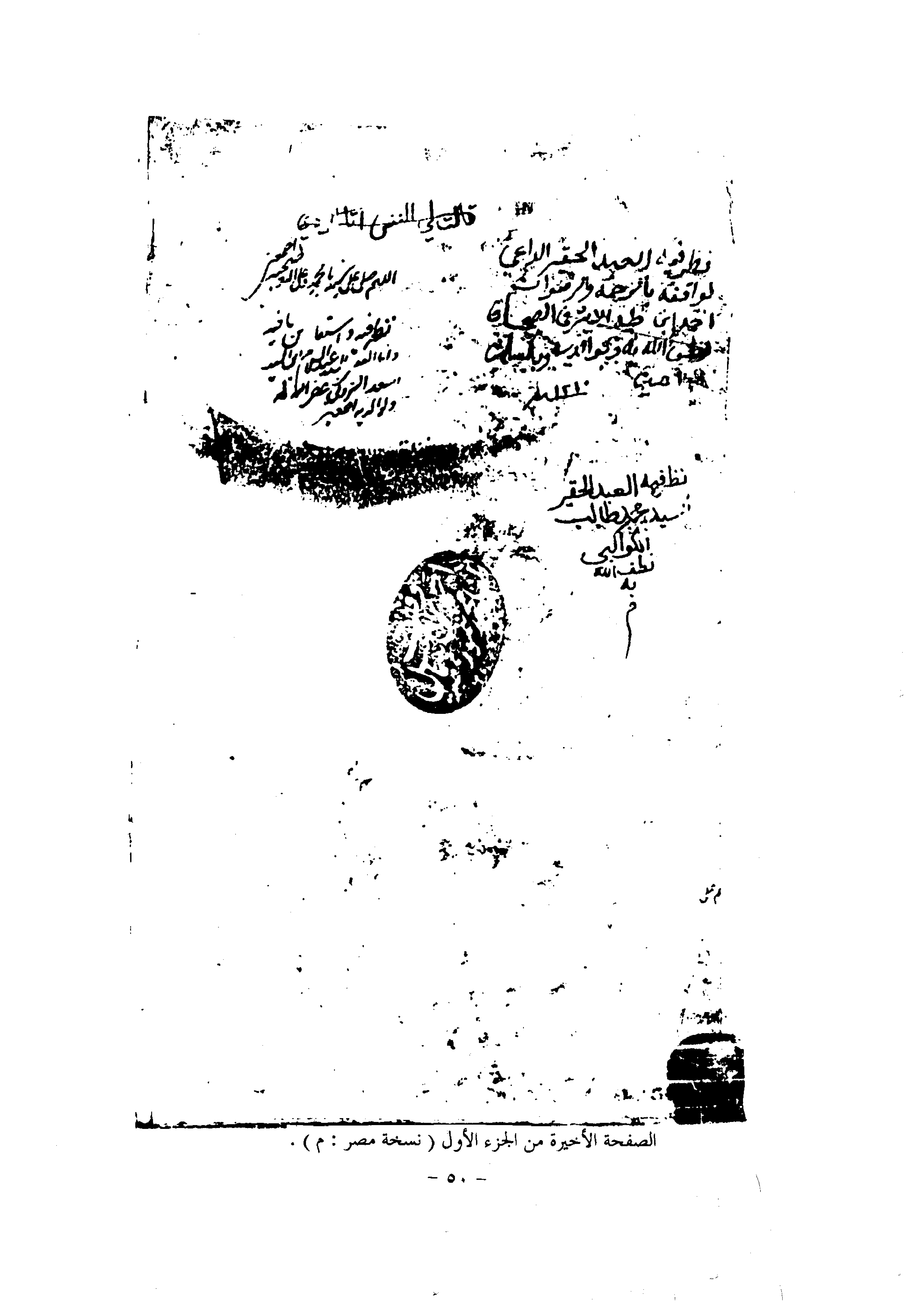 الصفحة الأخيرة من الجزء الأول (نسخة مصر: م) .