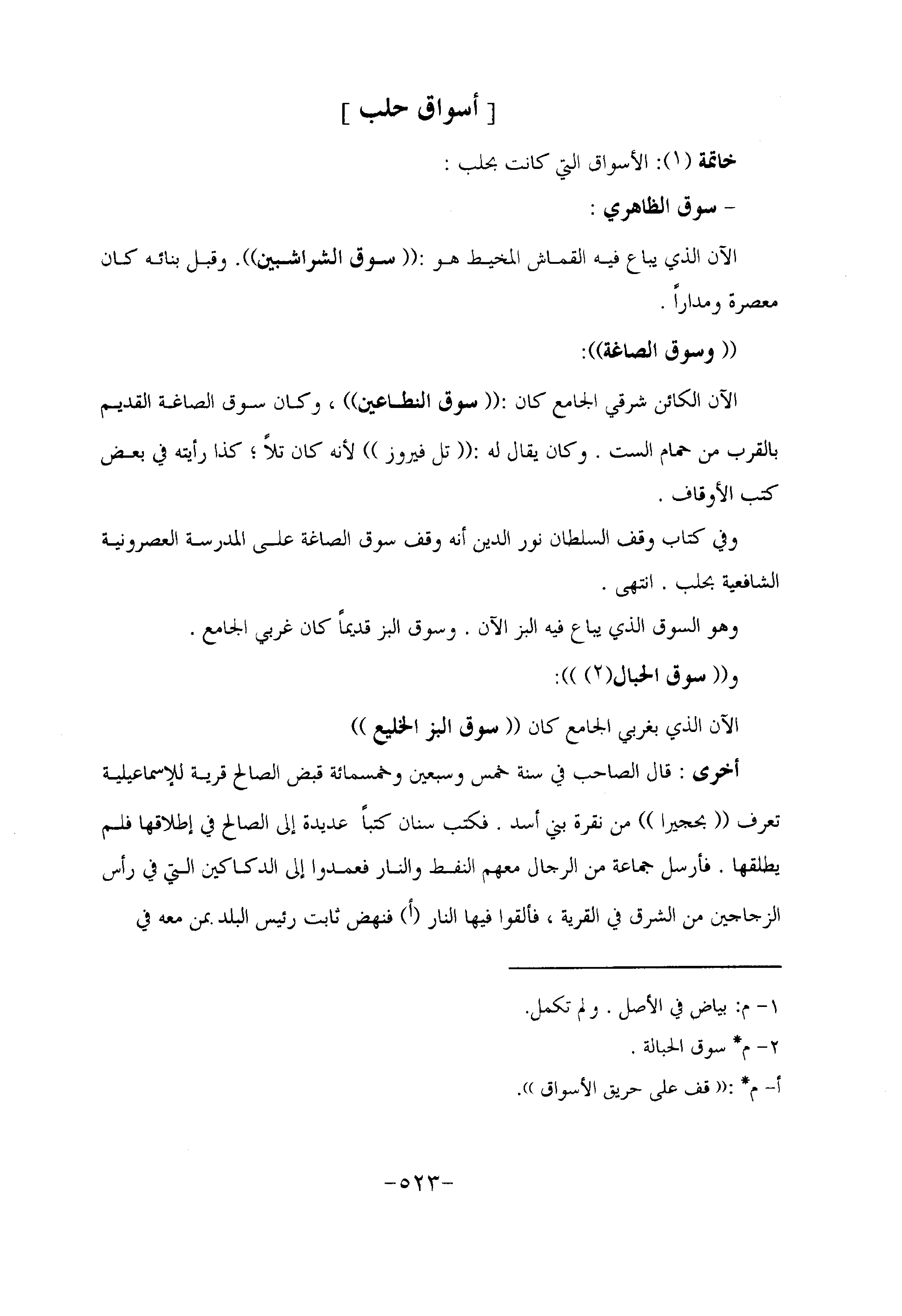 خاتمة «1» : الأسواق التي كانت بحلب: