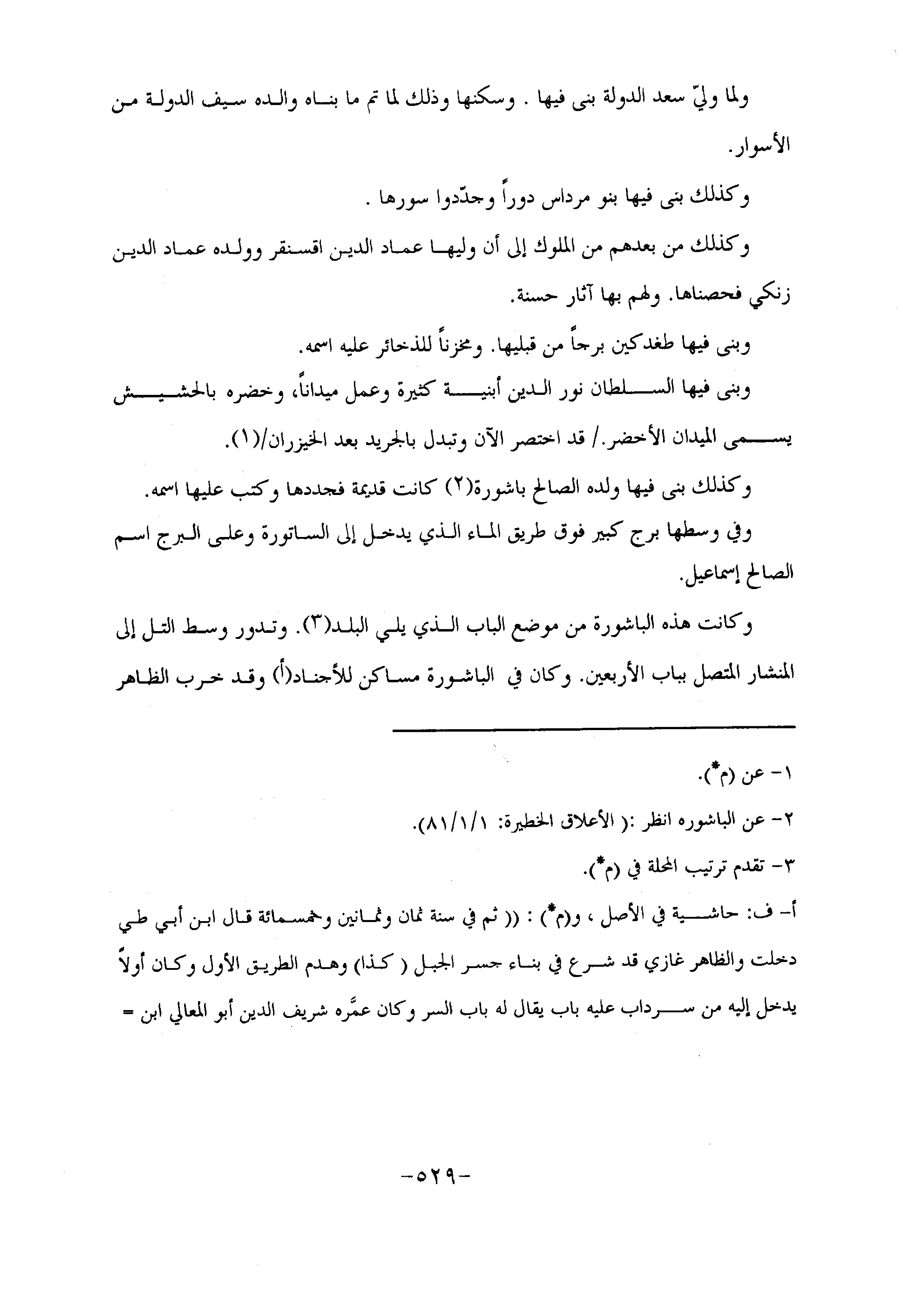 وكذلك من بعدهم من الملوك إلى أن وليها عماد الدين اقسنقر وولده عماد الدين زنكي فحصناها. ولهم بها آثار حسنة.