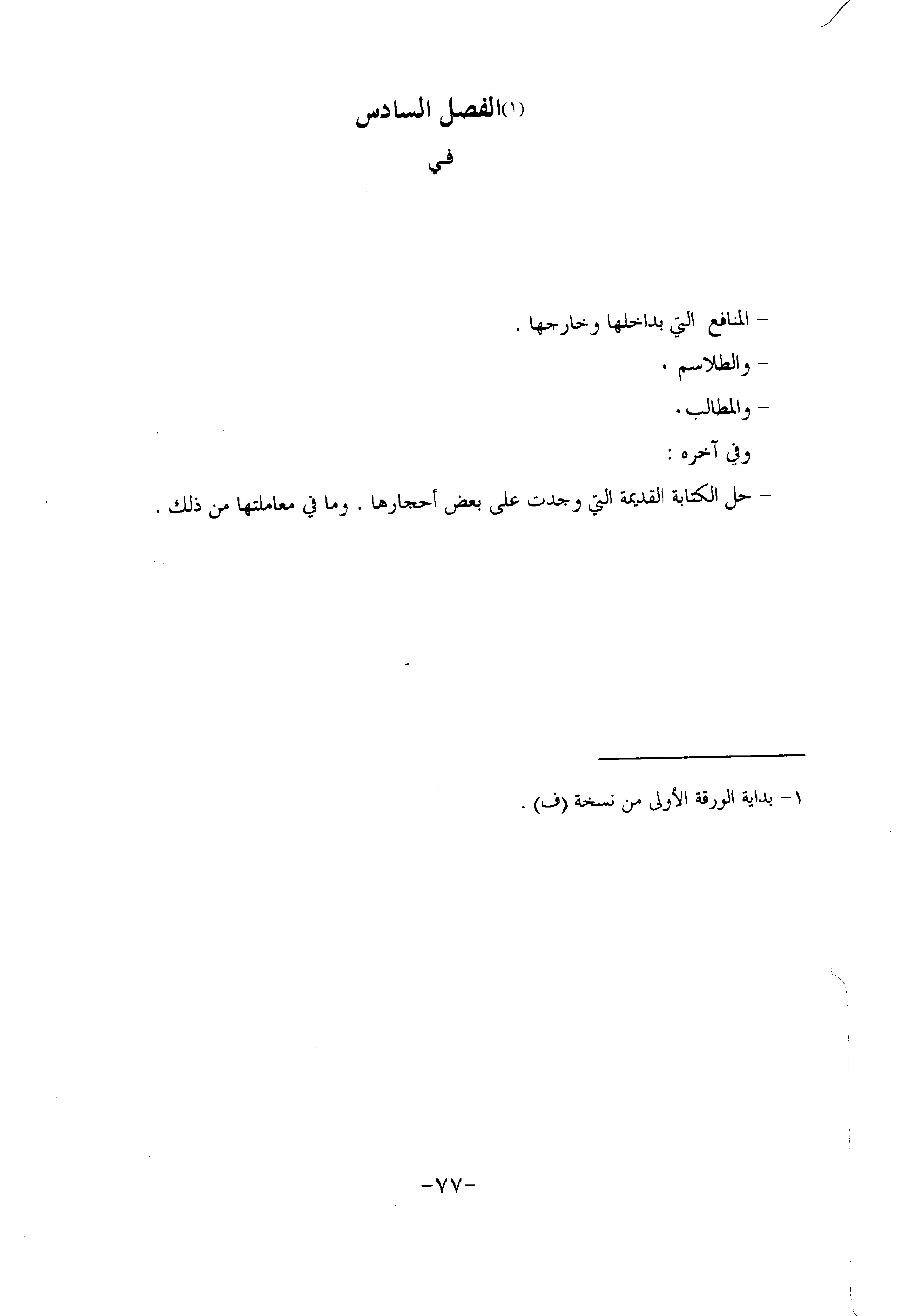 - حل الكتابة القديمة التي وجدت على بعض أحجارها. وما في معاملتها من ذلك.