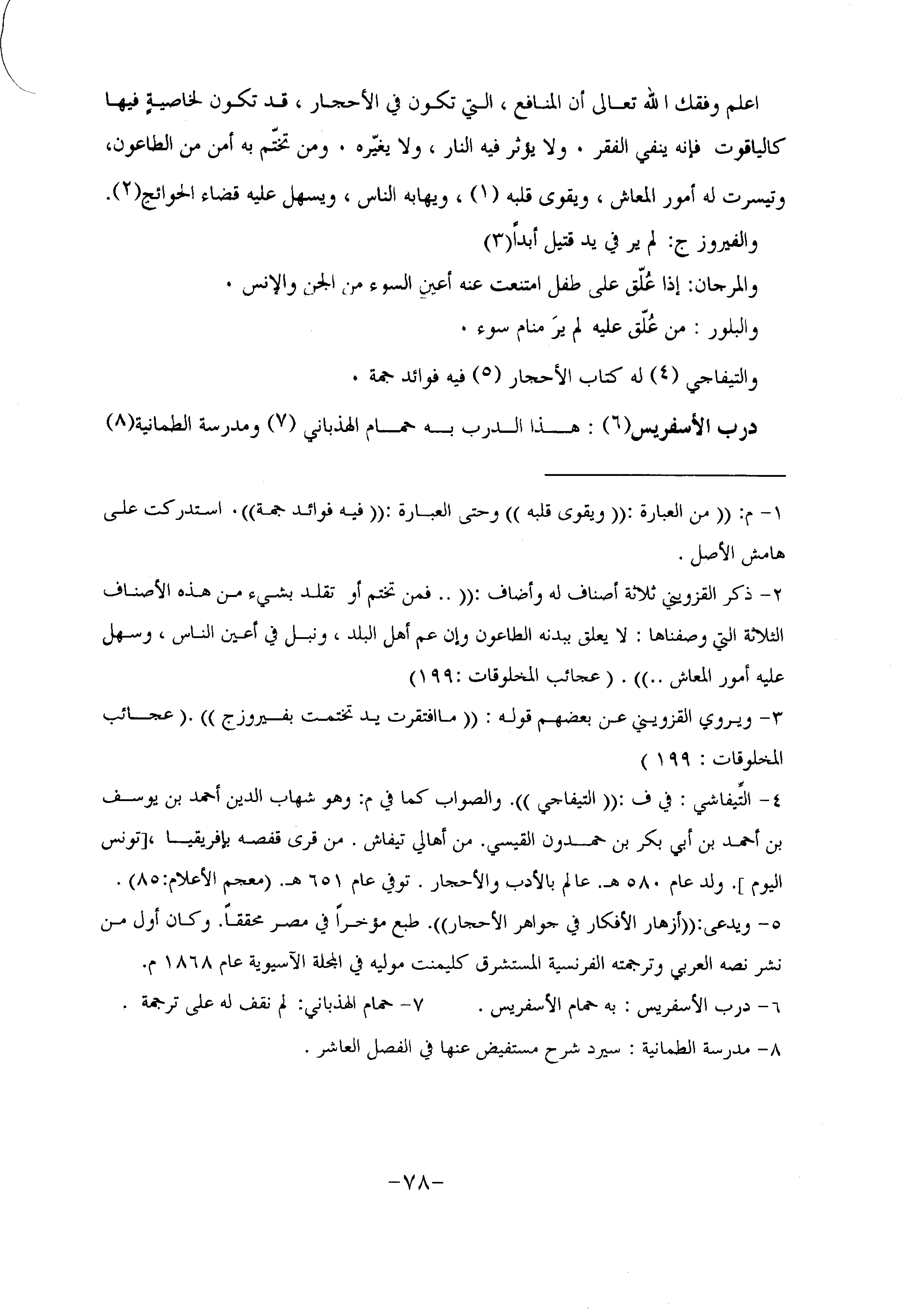 والتيفاجي «4» له كتاب الأحجار «5» فيه فوائد جمة.