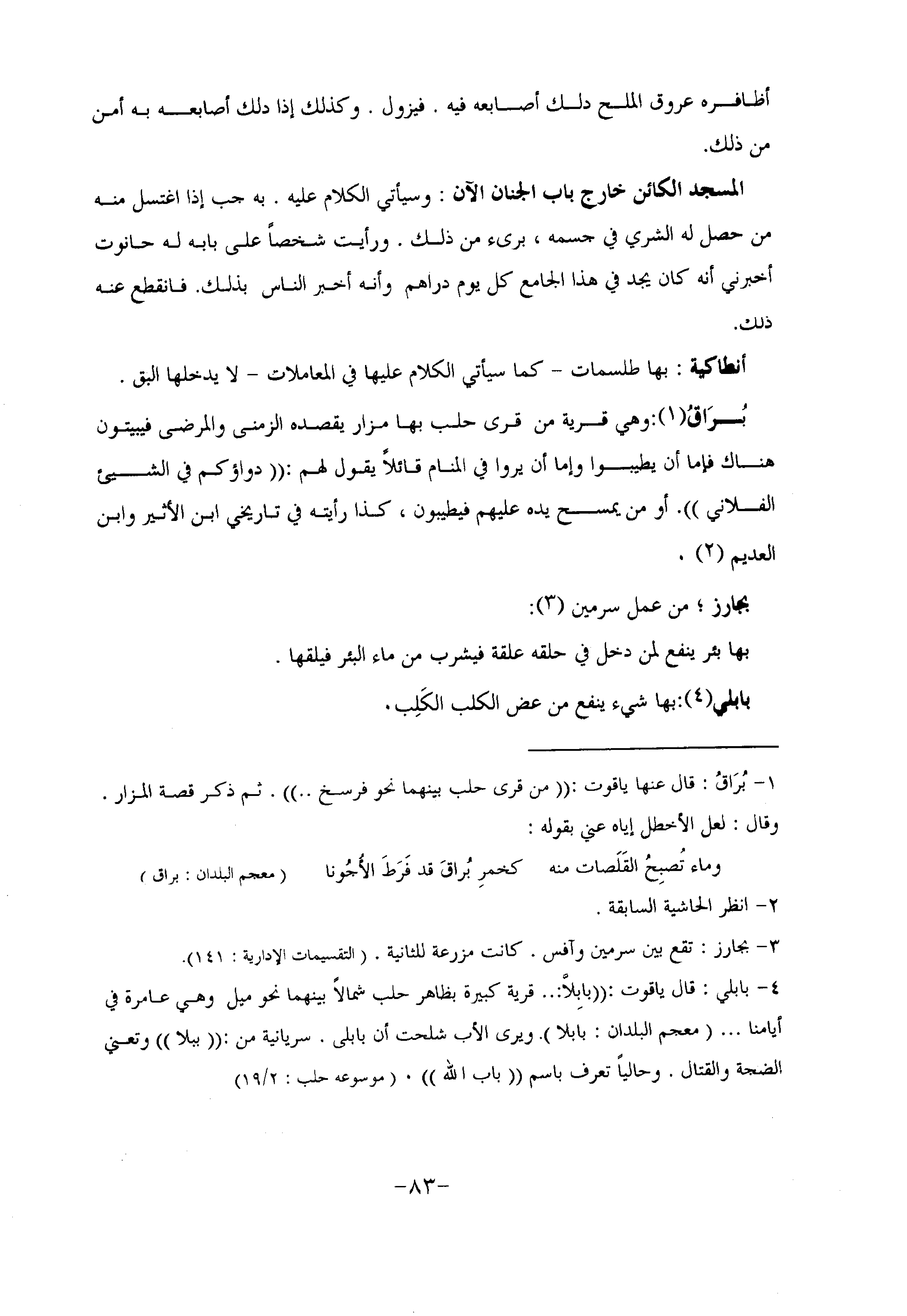 وهي قرية من قرى حلب بها مزار يقصده الزمنى والمرضى فيبيتون هناك فإما أن يطيبوا وإما أن يروا في المنام قائلا يقول لهم: «دواؤكم في الشيء الفلاني» . أو من يمسح يده عليهم فيطيبون، كذا رأيته في تاريخي ابن الأثير وابن العديم «2» .