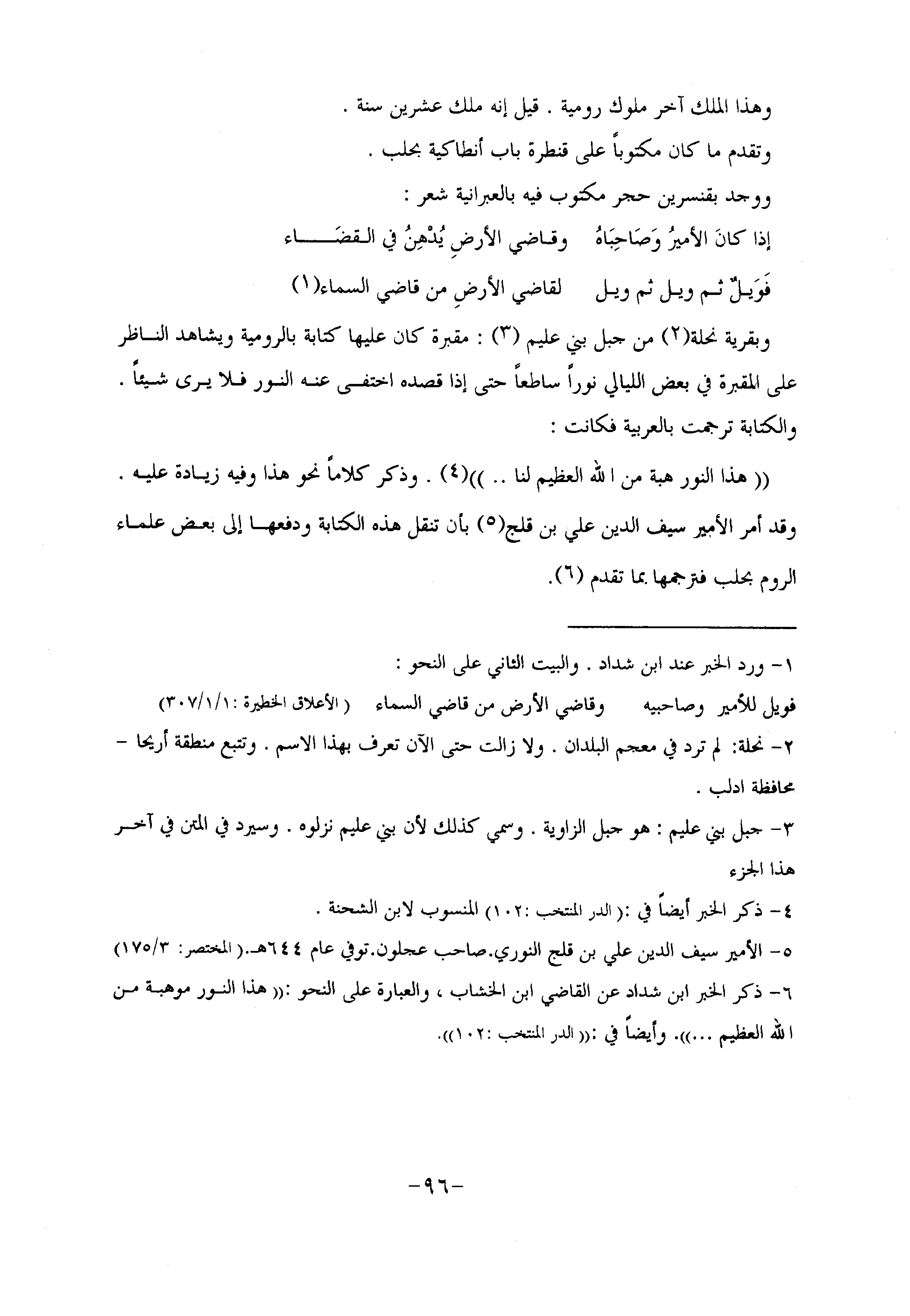 وتقدم ما كان مكتوبا على قنطرة باب أنطاكية بحلب.