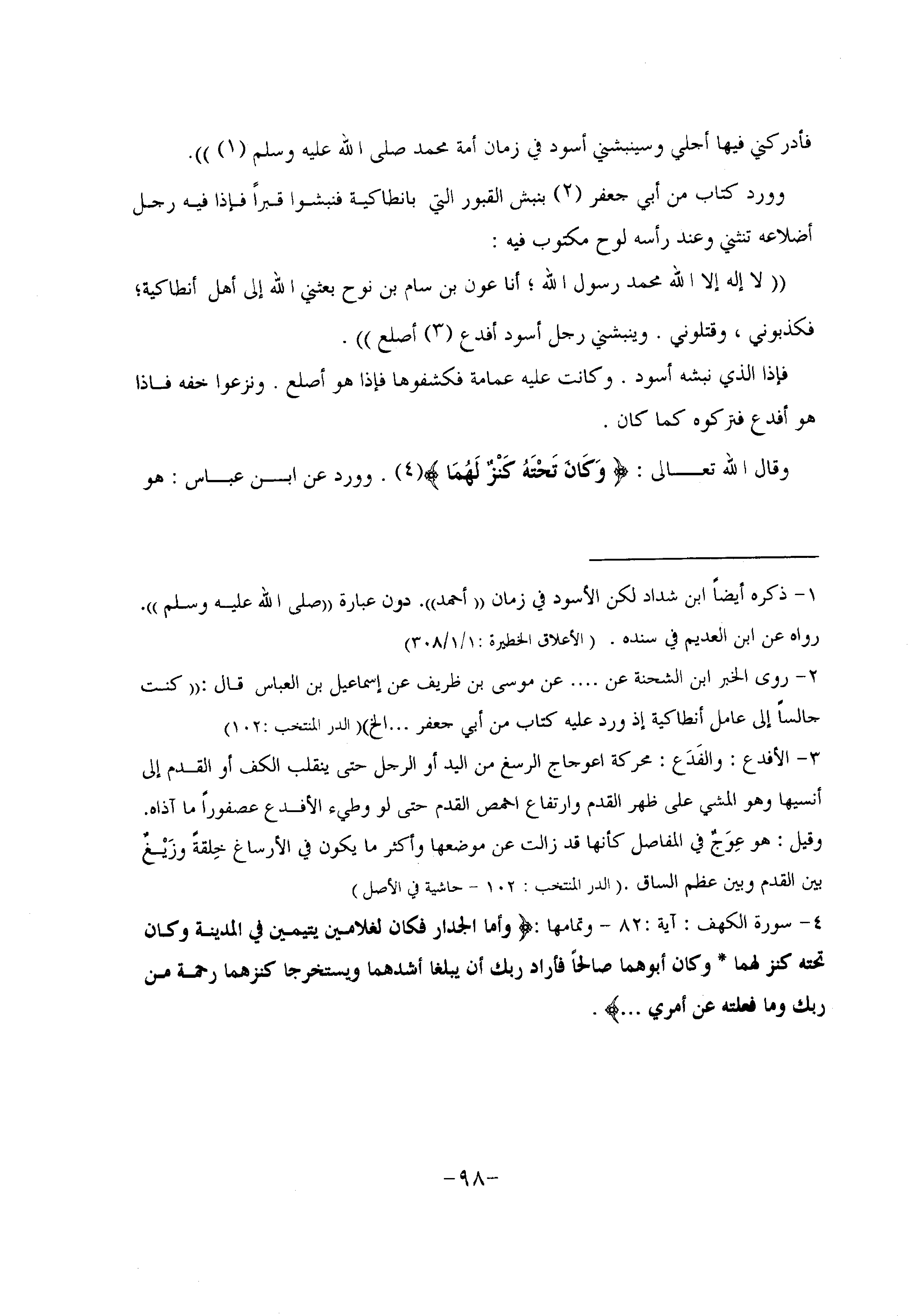 فإذا الذي نبشه أسود. وكانت عليه عمامة فكشفوها فإذا هو أصلع. ونزعوا خفه فاذا هو أفدع فتركوه كما كان.