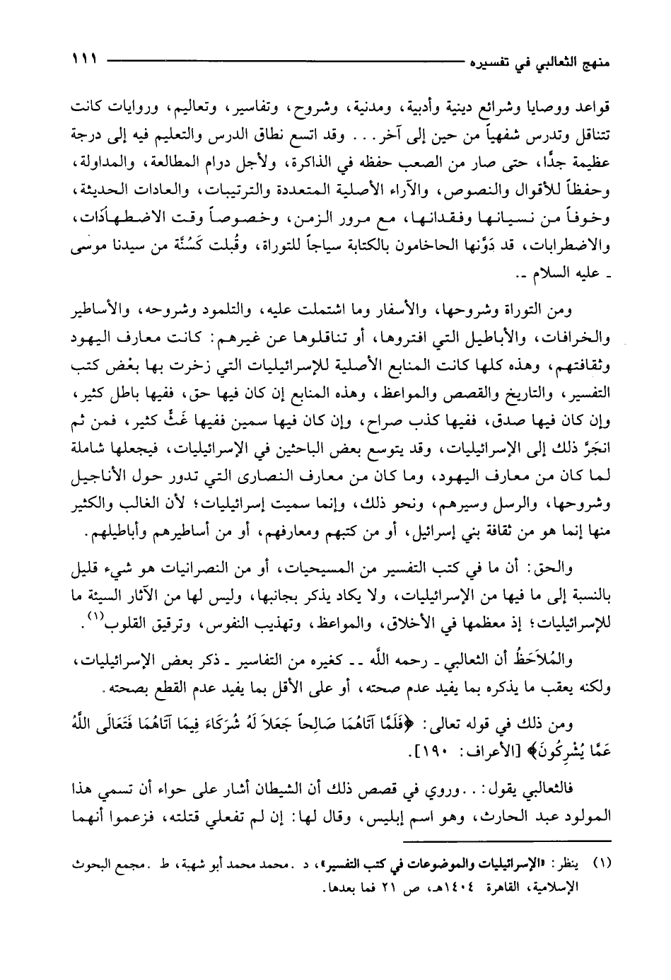 (1) ينظر: «الإسرائيليات والموضوعات في كتب التفسير» ، د. محمد محمد أبو شهبة، ط. مجمع البحوث الإسلامية، القاهرة 1404 هـ، ص 21 فما بعدها.