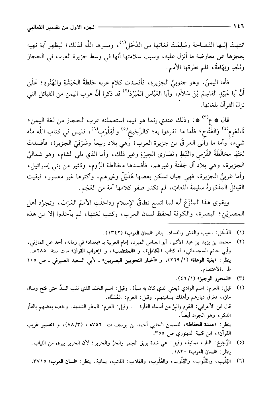 فأما اليمن، وهو جنوبيّ الجزيرة، فأفسدت كلام عربه خلطة الحبشة والهنود على أنّ أبا عبيد القاسم بن سلّام، وأبا العبّاس المبرّد «2» قد ذكرا أنّ عرب اليمن من القبائل التي نزل القرآن بلغاتها.