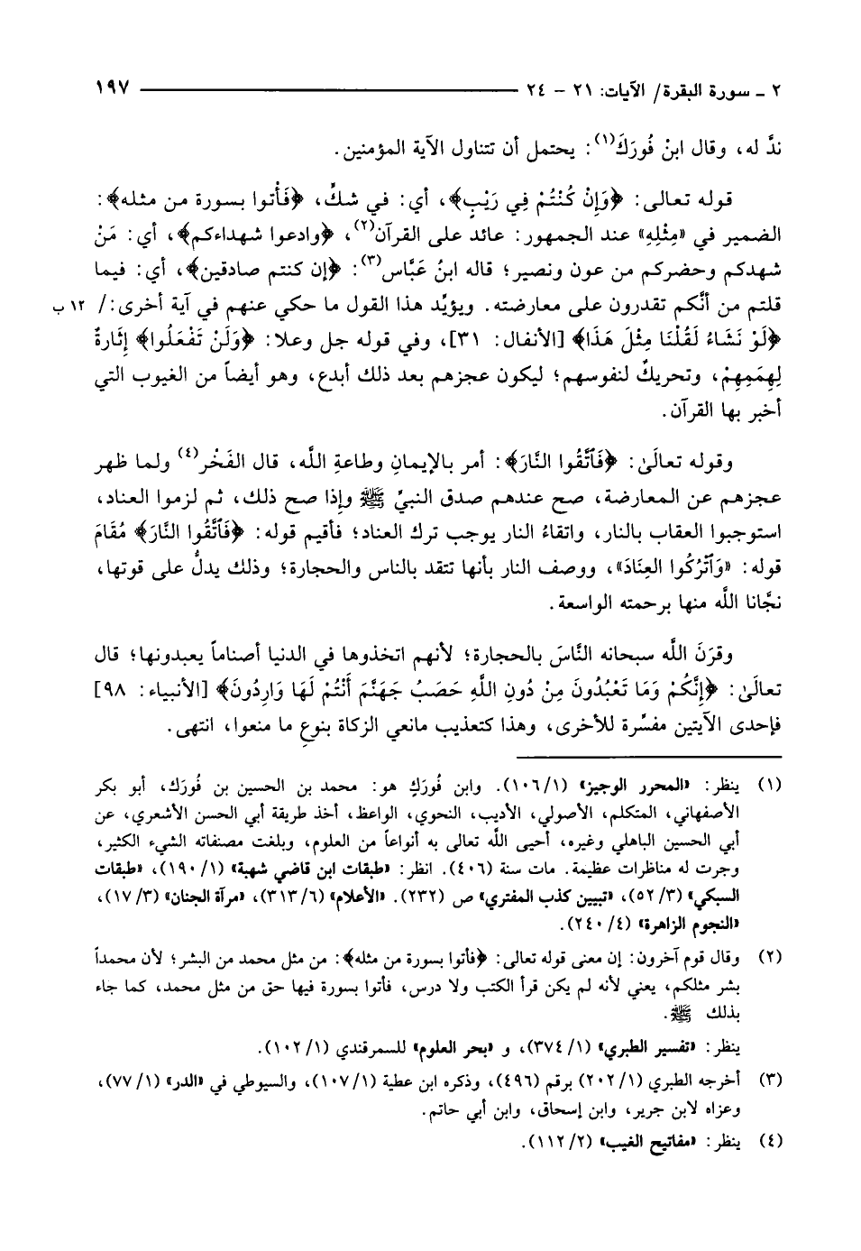 (1) ينظر: «المحرر الوجيز» (1/ 106) . وابن فورك هو: محمد بن الحسين بن فورك، أبو بكر الأصفهاني، المتكلم، الأصولي، الأديب، النحوي، الواعظ، أخذ طريقة أبي الحسن الأشعري، عن أبي الحسين الباهلي وغيره، أحيى الله تعالى به أنواعا من العلوم، وبلغت مصنفاته الشيء الكثير، وجرت له مناظرات عظيمة. مات سنة (406) . انظر: «طبقات ابن قاضي شهبة» (1/ 190) ، «طبقات السبكي» (3/ 52) ، «تبيين كذب المفتري» ص (232) . «الأعلام» (6/ 313) ، «مرآة الجنان» (3/ 17) ، «النجوم الزاهرة» (4/ 240) .