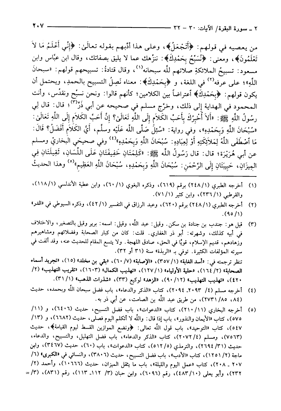 (4) أخرجه مسلم (4/ 2093- 2094) ، كتاب «الذكر والدعاء» ، باب فضل سبحان الله وبحمده، حديث (84، 85/ 2731) ، من طريق عبد الله بن الصامت، عن أبي ذر به.