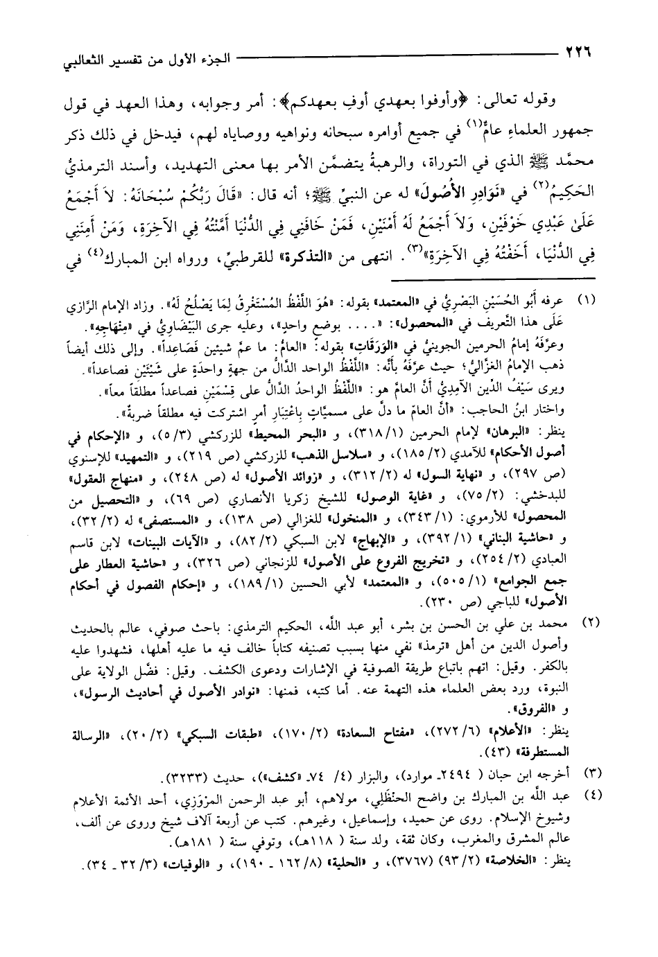 (2) محمد بن علي بن الحسن بن بشر، أبو عبد الله، الحكيم الترمذي: باحث صوفي، عالم بالحديث وأصول الدين من أهل «ترمذ» نفي منها بسبب تصنيفه كتابا خالف فيه ما عليه أهلها، فشهدوا عليه بالكفر. وقيل: اتهم باتباع طريقة الصوفية في الإشارات ودعوى الكشف. وقيل: فضّل الولاية على النبوة، ورد بعض العلماء هذه التهمة عنه. أما كتبه، فمنها: «نوادر الأصول في أحاديث الرسول» ، و «الفروق» .