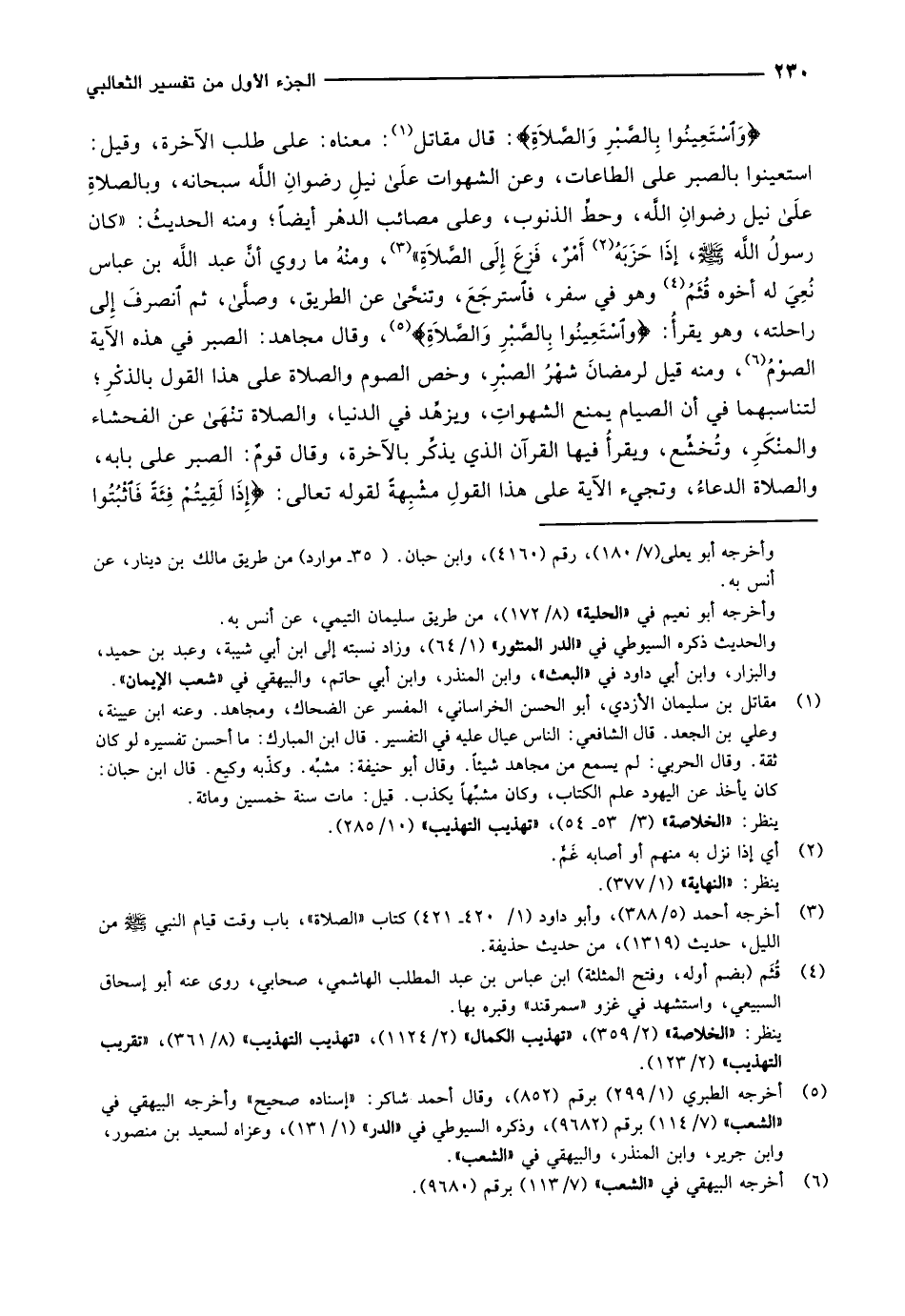 (5) أخرجه الطبري (1/ 299) برقم (852) ، وقال أحمد شاكر: «إسناده صحيح» وأخرجه البيهقي في «الشعب» (7/ 114) برقم (9682) ، وذكره السيوطي في «الدر» (1/ 131) ، وعزاه لسعيد بن منصور، وابن جرير، وابن المنذر، والبيهقي في «الشعب» .