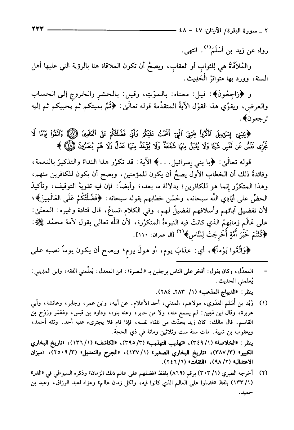 يا بَنِي إِسْرائِيلَ اذْكُرُوا نِعْمَتِيَ الَّتِي أَنْعَمْتُ عَلَيْكُمْ وَأَنِّي فَضَّلْتُكُمْ عَلَى الْعالَمِينَ (47) وَاتَّقُوا يَوْماً لا تَجْزِي نَفْسٌ عَنْ نَفْسٍ شَيْئاً وَلا يُقْبَلُ مِنْها شَفاعَةٌ وَلا يُؤْخَذُ مِنْها عَدْلٌ وَلا هُمْ يُنْصَرُونَ (48)